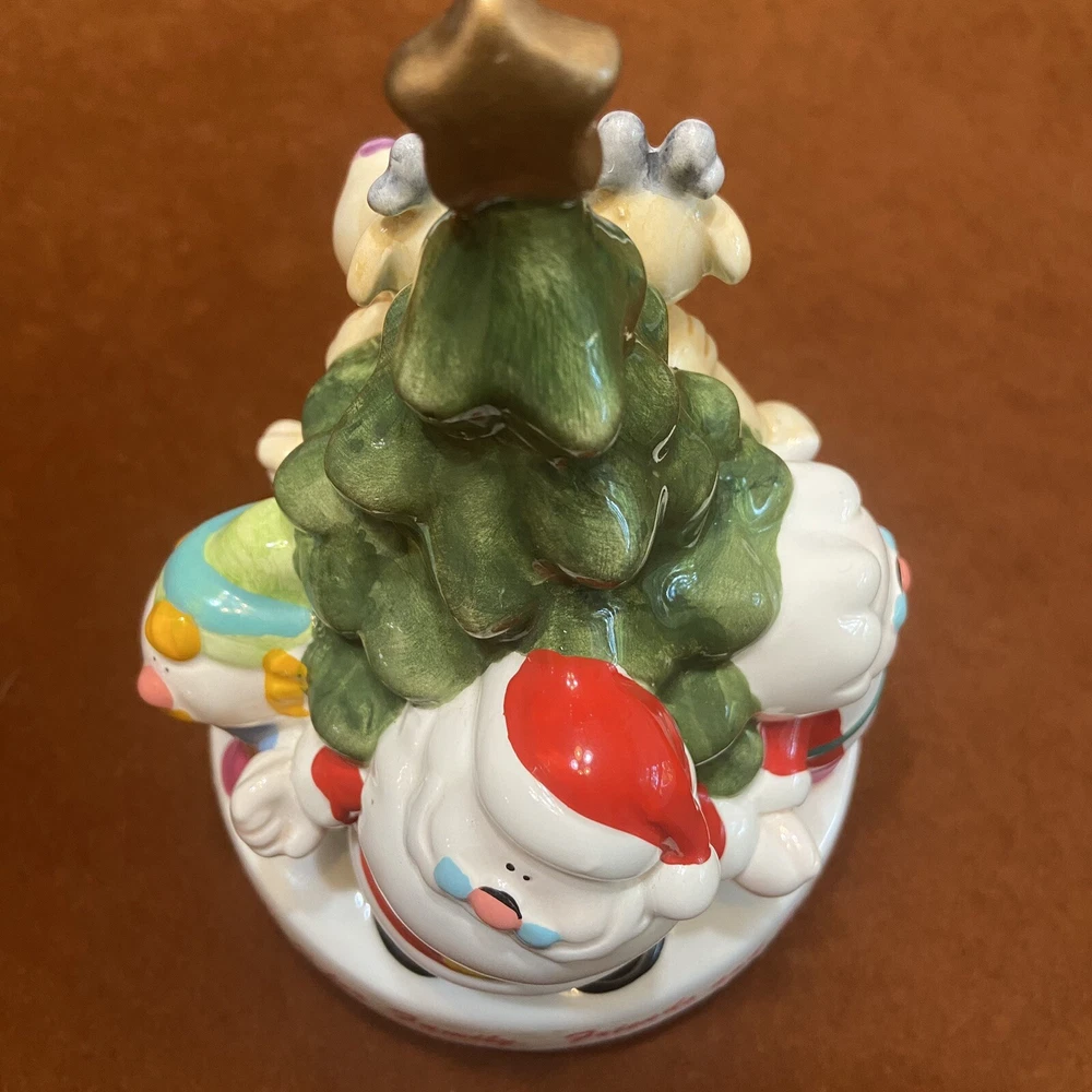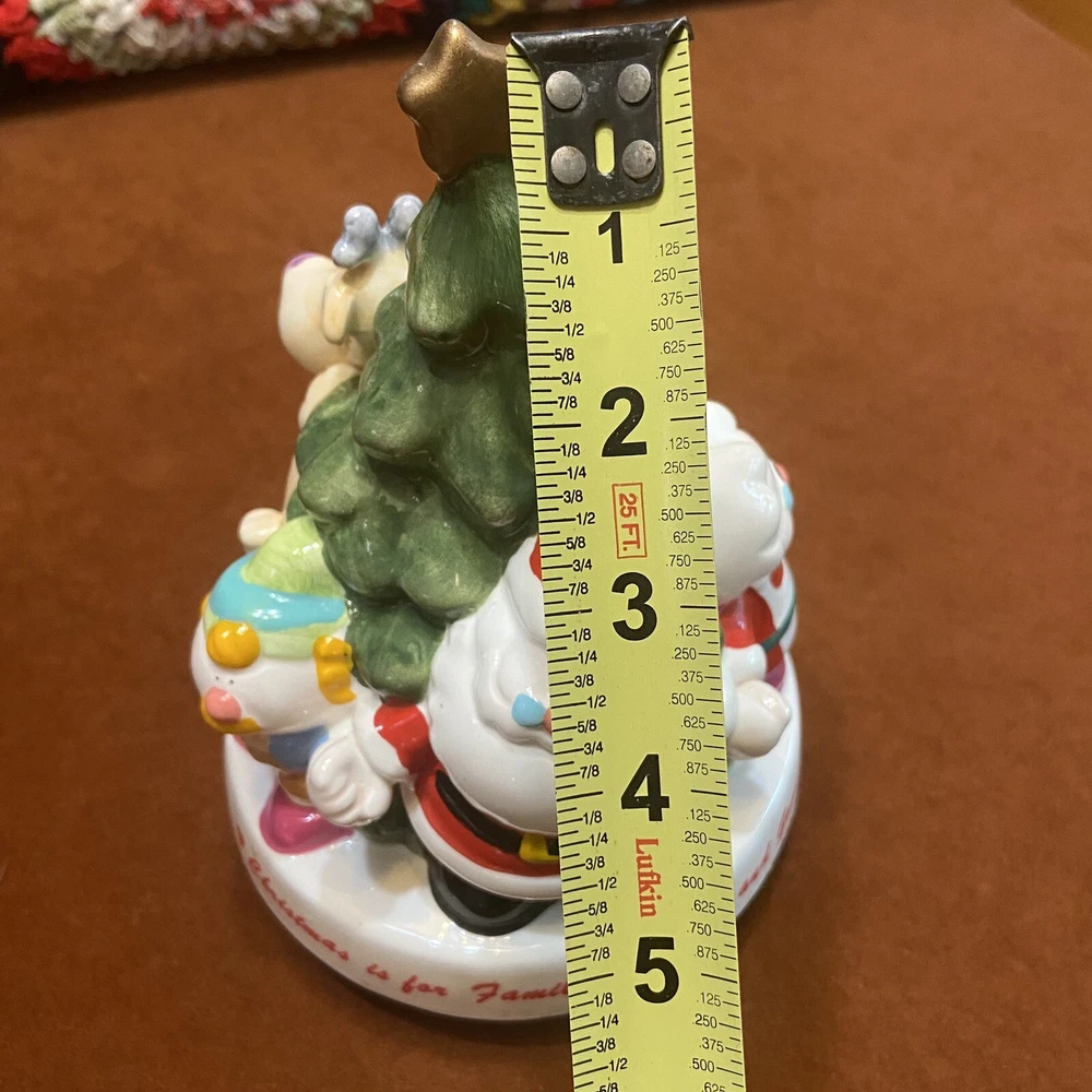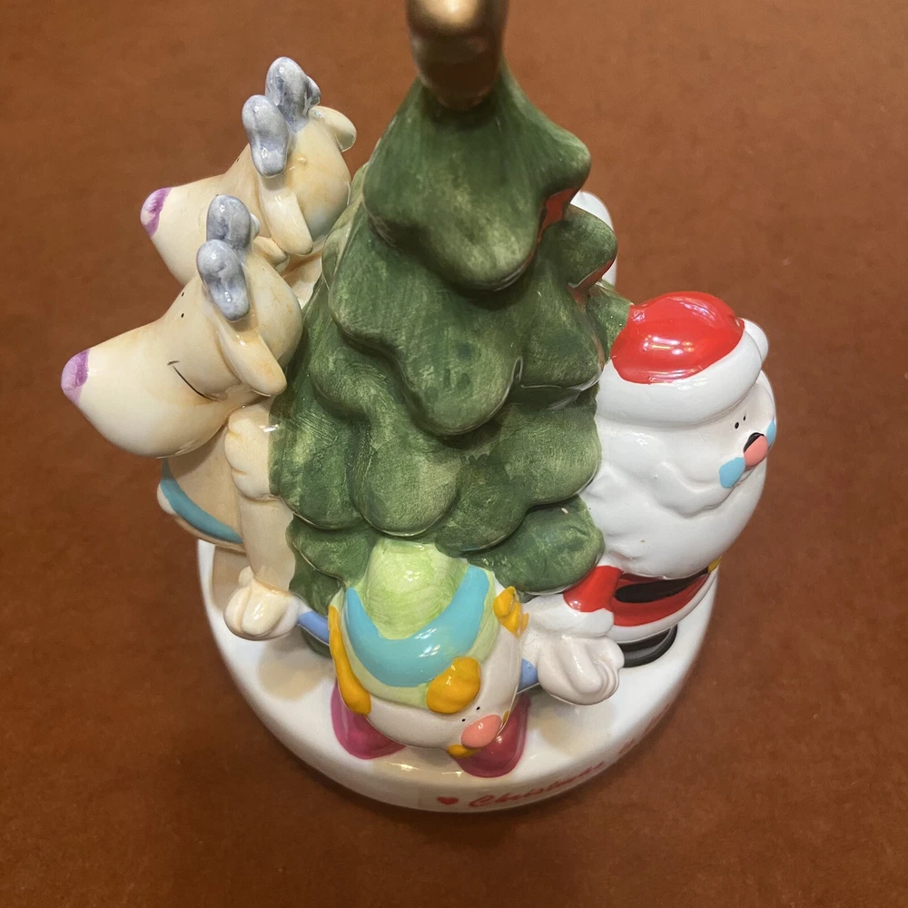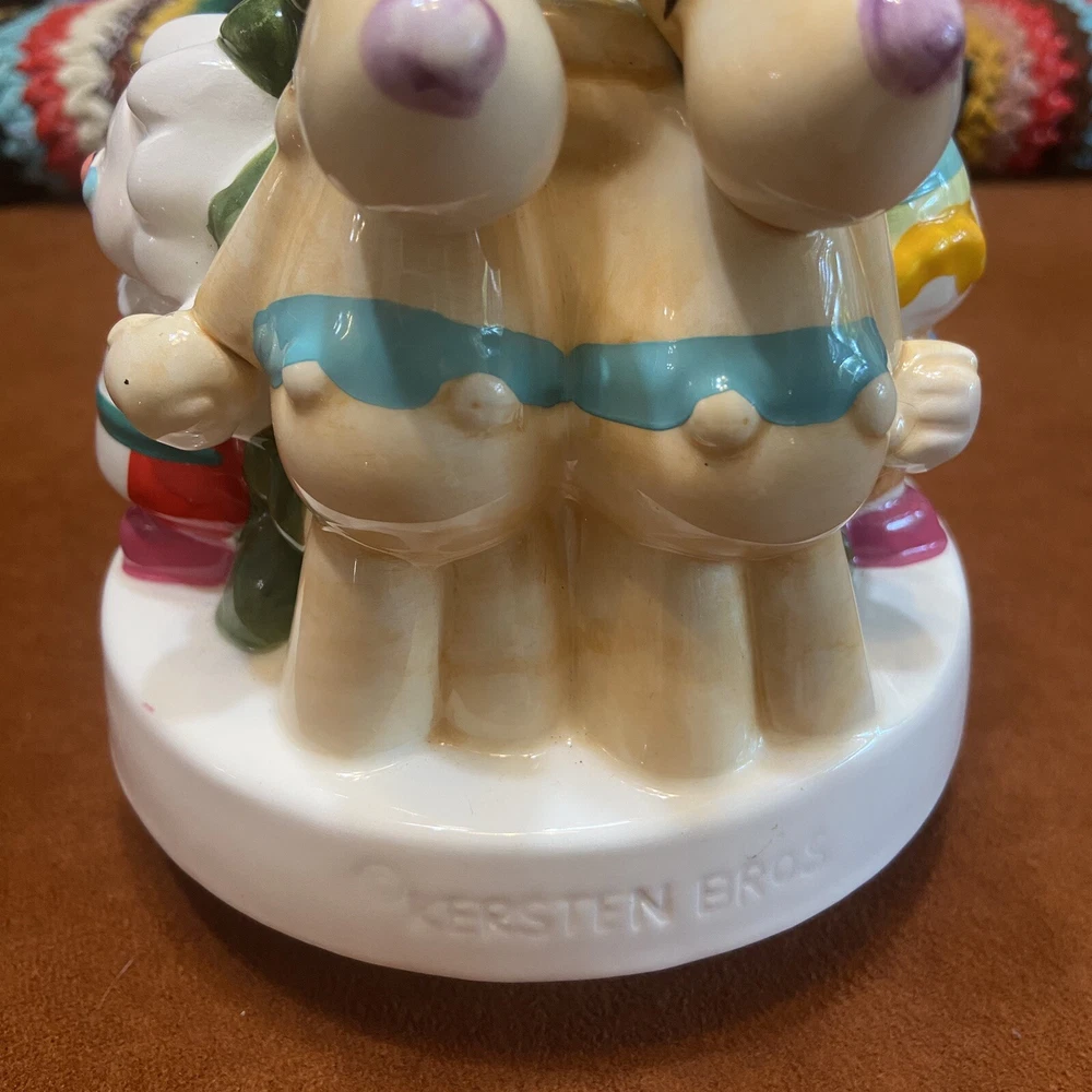Add some festive cheer & chime to your home with this vintage ceramic figurine featuring Santa & Mrs Claus and his reindeer. The handmade piece from Kersten Brothers is perfect for Christmas decorating and features a wind-up musical tune that plays "Christmas is for family. Friends & good times" for all to enjoy. The medium-sized figurine is made of ceramic and features intricate details that make it a great addition to any collection. This collectible item is from the 1960s-1970s and has a modern design that will appeal to both boys and girls. It is a great way to add some music and holiday spirit to your home decor. Whether you're a collector or just looking for a unique Christmas decoration, this figurine is sure to delight. Wind up works. No signs of previous owner.