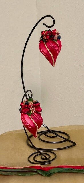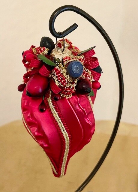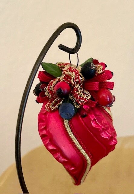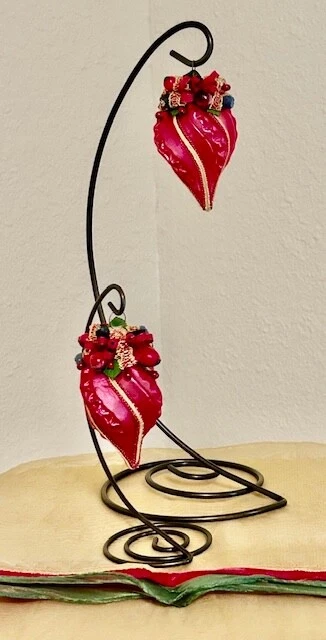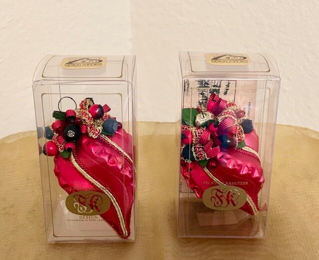 GORGEOUS Vintage Collectible LOT OF 2 Red Cone Shape Embellished Ornaments w/Berries - Felicitas Collection by Zehetner-Smith Design Imports West Germany. These were purchased at an upscale gift shop in Austin, TX in 1985/1986. I have seen listings for one ornament for $50+ as this brand is treasured by collectors throughout the world. Measures approximately: 3 5/8”H x 2 1/4”W. In original packaging. Excellent/Like New Preowned Vintage Condition. Very Minimal signs of age or wear. See my listing for lot of 2 coordinating egg shaped ornaments! THIS LISTING IS FOR ORNAMENTS ONLY AND DOES NOT INCLUDE STANDS. USPS Priority Mail shipping. Insured and packaged securely.