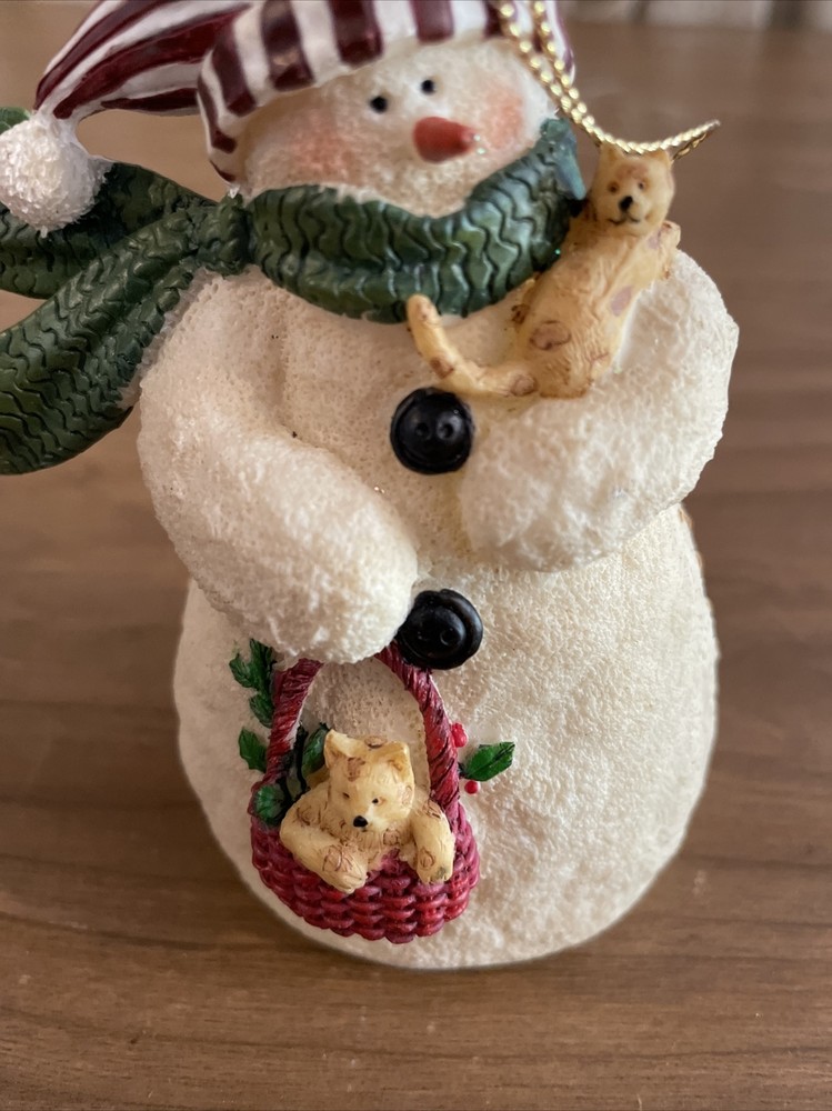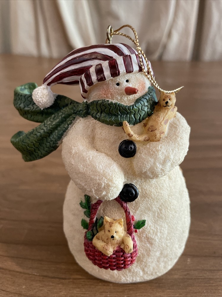 This vintage ornament from RAZ Imports is a charming addition to any Christmas collection. Featuring a snowman and kittens, it's perfect for animal lovers and collectors alike. The ornament is artist-designed and made of resin, with a multicolor finish that adds a festive touch. The snowman and kittens ornament measures 4.5 inches in height and 3.5 inches in width, making it a medium-sized piece that can easily be hung on a tree or displayed elsewhere. It's part of the Snowmen collection and has a nostalgic, vintage feel. Ideal for anyone looking for a decorative and sentimental ornament, this piece is a must-have for the holiday season. Please note I have a 10 day shipping, it is usually sooner. If you need an item before that time please contact me
