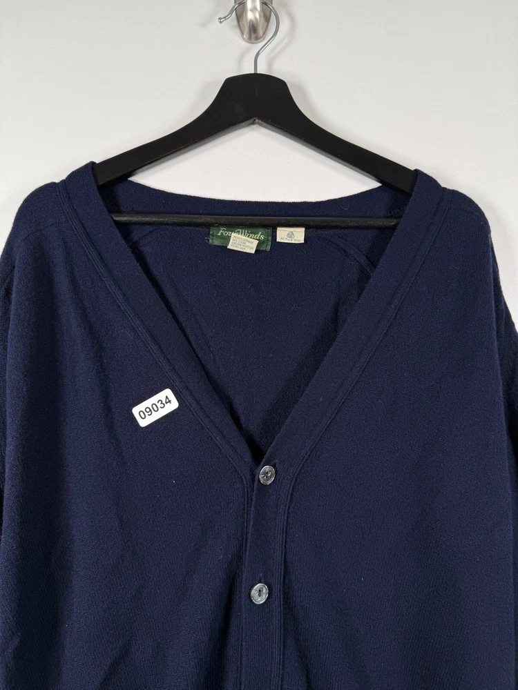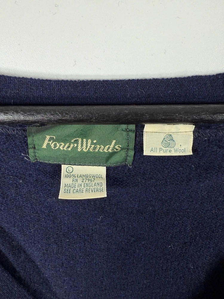 Vtg Four Winds Mens Button Up V Neck Cardigan Sweater Wool Blue Sz L 22x29. Condition is Pre-owned. Dispatched with USPS Ground Advantage.