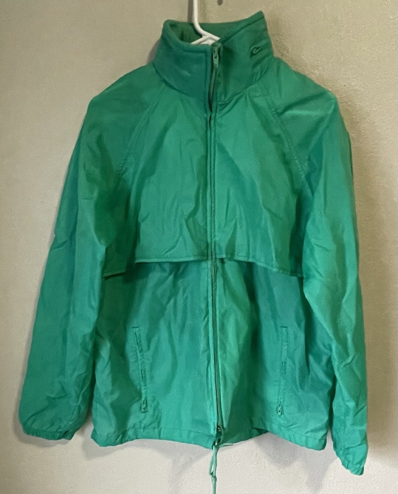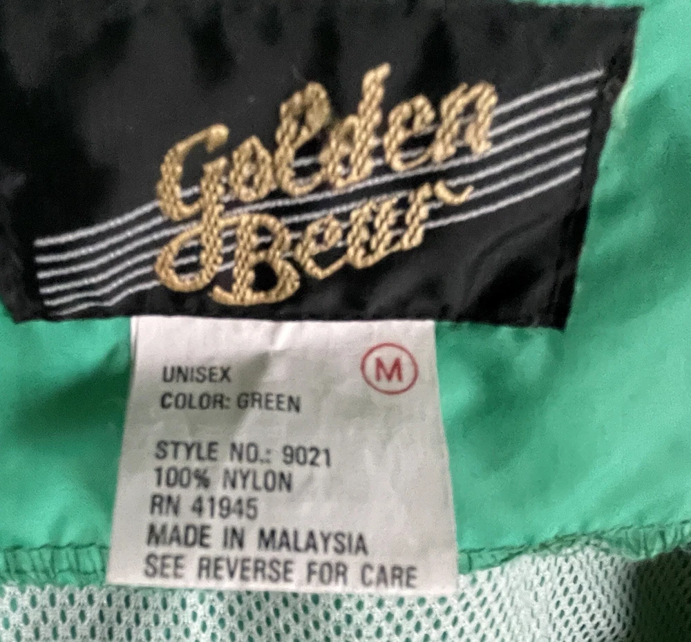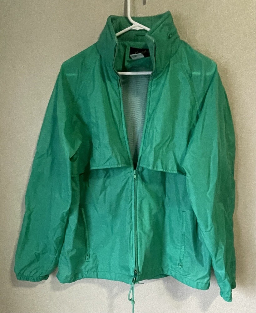 Get ready for any season with this colorful outdoor windbreaker jacket from Golden Bear. The relaxed fit and mid-length make it perfect for walking and active wear. Its water and wind-resistant features and breathable microfiber fabric type ensure comfort and durability. The jacket includes a storeable hood, zipped pockets, and a full zip closure with a spread collar style. The green color and vintage style add a touch of uniqueness to any wardrobe. Available in size M, this unisex jacket is machine washable for easy care.