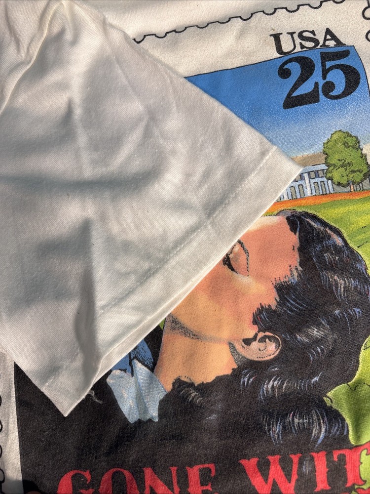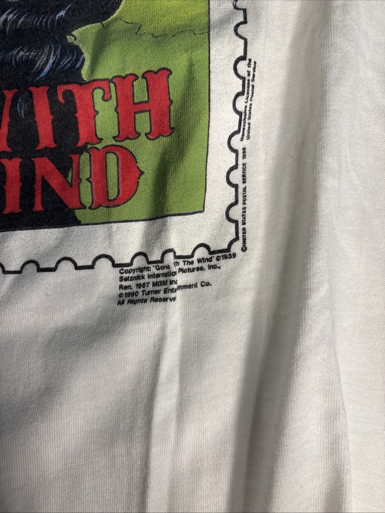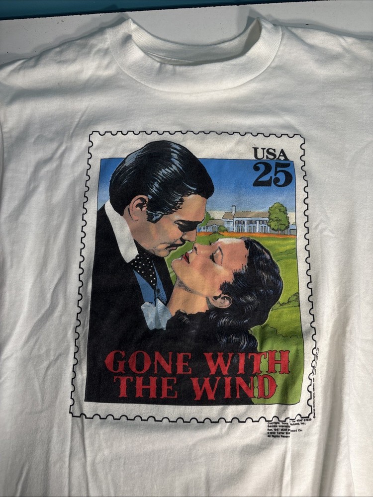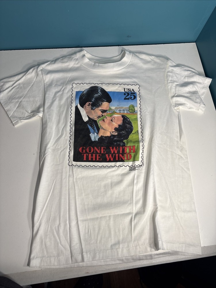 Vtg Gone With The Wind Shirt Men Medium White 90s Stamp Clark Gable Vivien Large. Shipped with USPS Ground Advantage....