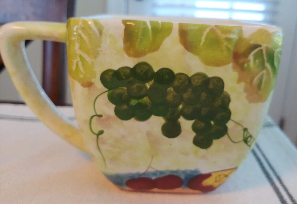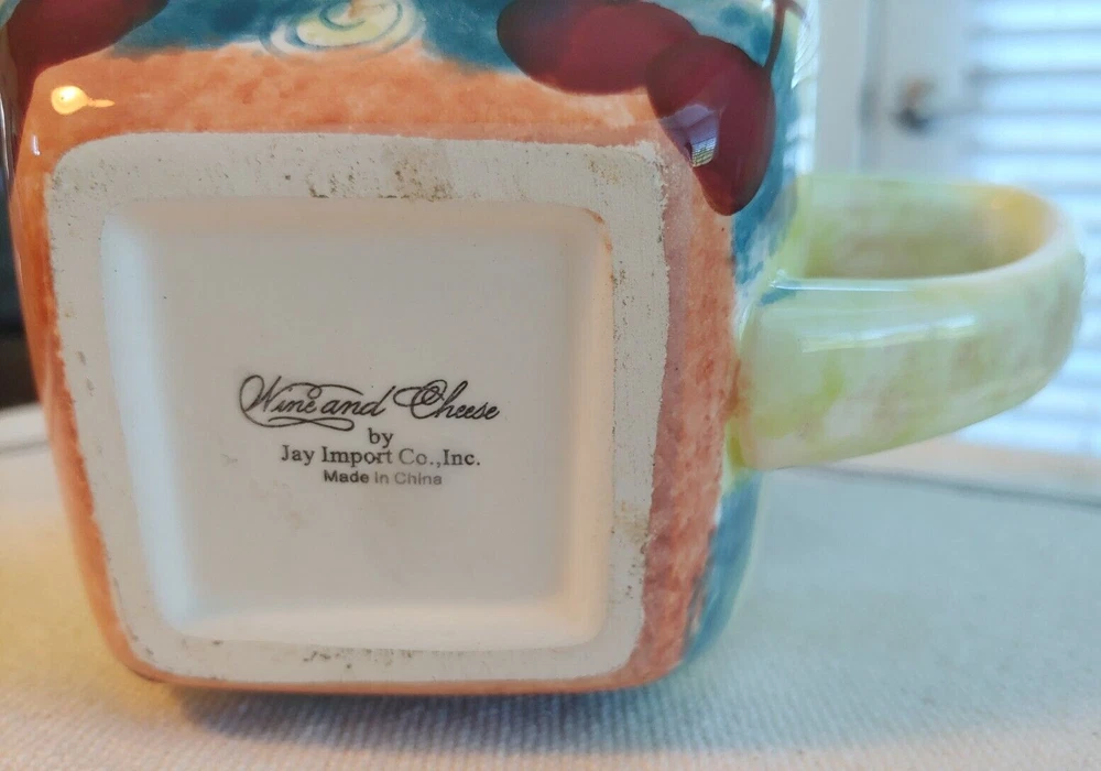 Vtg Jay Import Co., Inc. Wine & Cheese Large Square Mug Approx.: 4" h x 4" w (excluding handle) x 4" deep Capacity: approx. 18 ounces Good condition, no cracks or discoloration Smoke-free home...