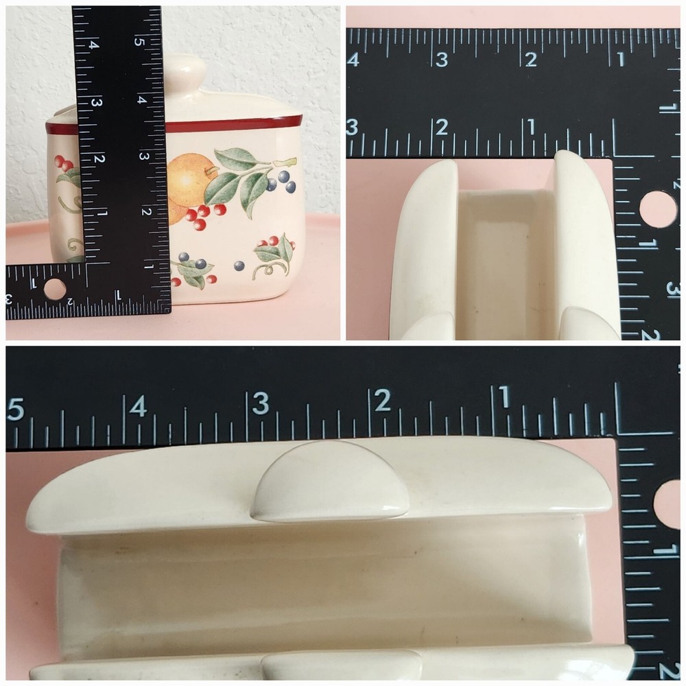 Absolutely love this vintage ceramic set! The charming fruit pattern adds a cheerful, retro vibe to my kitchen. The napkin holder and shakers are in excellent condition—no chips or cracks, just some minor yellowing on the pepper stopper as expected. Perfect size for daily use, and the white ceramic keeps it timeless. Arrived carefully packaged, just as pictured. A great find for anyone who loves nostalgic kitchenware!