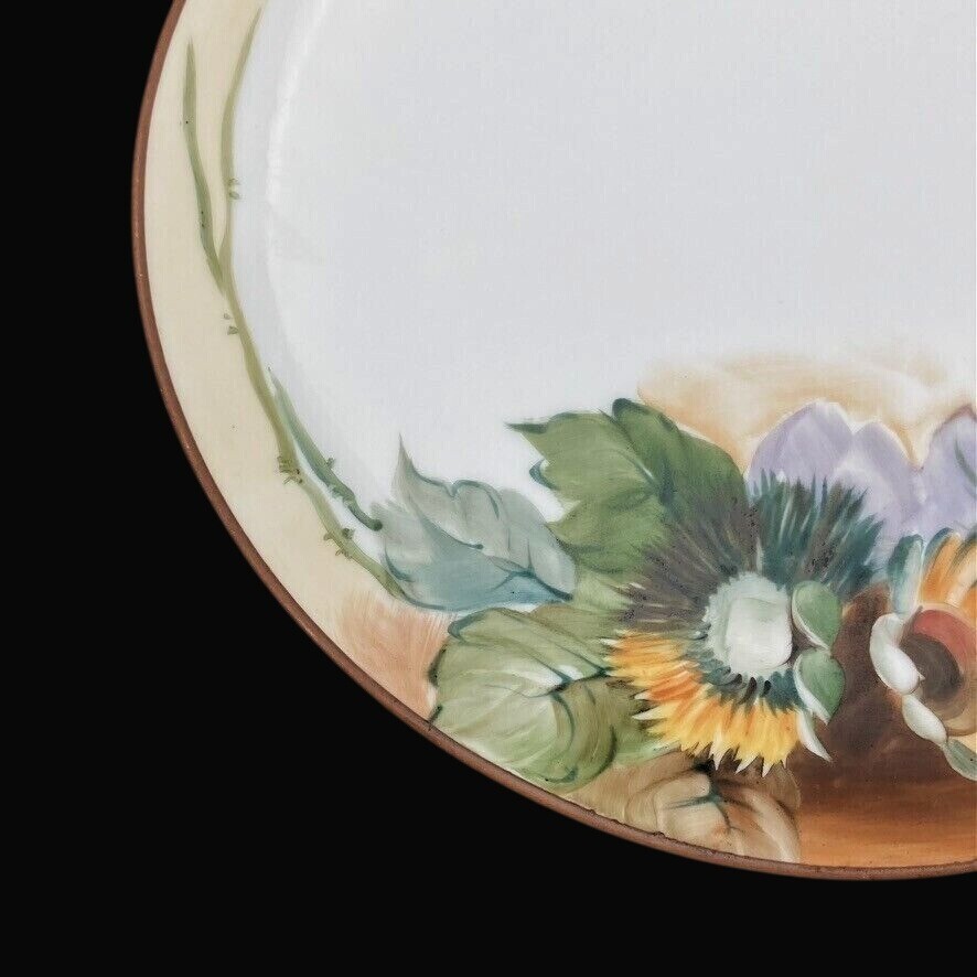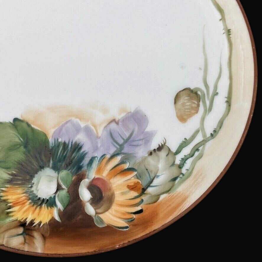 Vintage Nippon Morimura Brothers Hand Painted 7.75" Plate Sunflowers Floral M in Wreath Wonderful vintage Nippon era Morimura Brothers plate, featuring a hand painted design of what look to be sun flowers nestled among leaves, painted in shades of brown, green, orange, and purple. PRODUCT INFORMATION: • Plate is marked on the underside with the "Hand Painted Nippon" Green M Wreath mark, which was used by Morimura Brothers importers after 1911 and before the use of the name "Japan" was used in 1921. • Made in Japan CONDITION: Pre-Owned Lovely vintage condition, with no chips, cracks, breakage, or repairs. Please see all photos; we've done our best to provide detailed views as the best representation of condition. Feel free to contact us with any questions you might have before you buy/bid. MEASUREMENTS: Height 1 in / 3 cm Diameter 7.75 in / 20 cm SHIPPING and HANDLING Our handling time is THREE (3) BUSINESS DAYS, and we ship packages Monday - Friday (with the exception of holidays). We use calculated shipping, which means the shipping costs you see are calculated by eBay based on actual costs to ship an item of this weight and dimensions with the shipping service you selected across distance between you and our emporium. ITERUM EMPORIUM Thank you for shopping our emporium! We would love to serve you again, so save/favorite/like our store and visit us again to see new items, listed regularly.