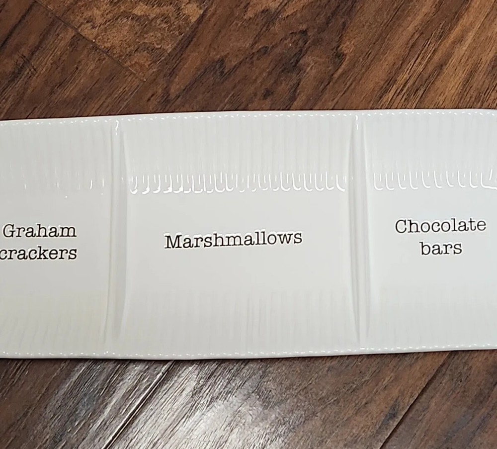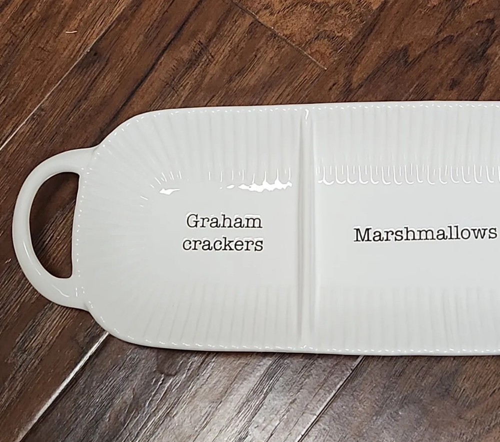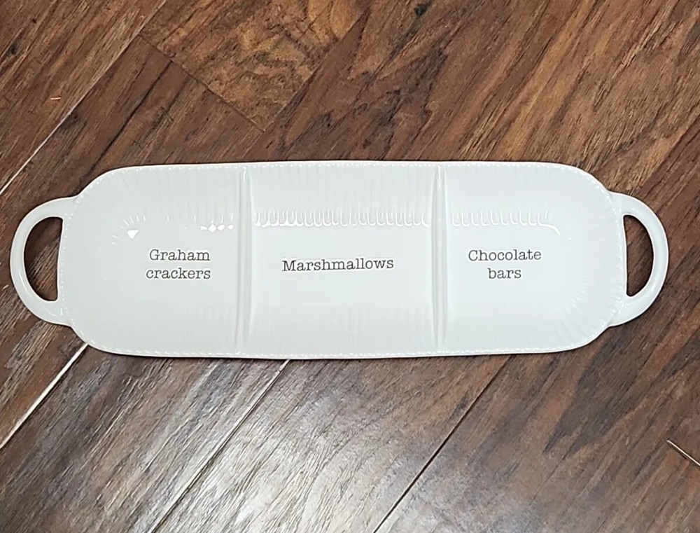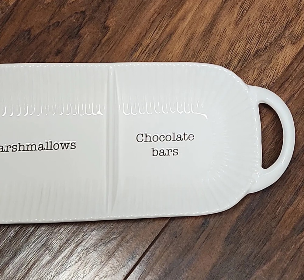 New Pier 1 Imports Hostess S'mores Handled Ceramic Tray Brand new never used 3 compartments 1 for Chocolate 1 for Graham Crackers 1 for Marshmallows No chips or cracks Brand new Hostess Tray Please see all photos Thanks for looking Check out my Ebay store for more great items Erie Shores Pickers