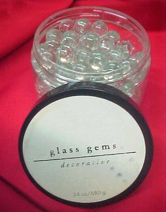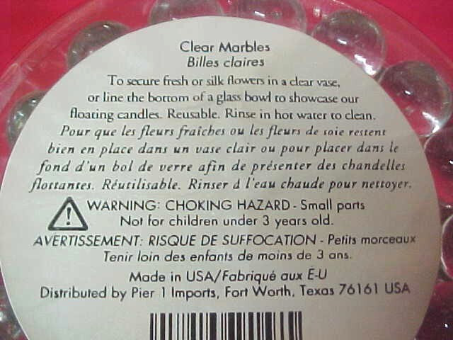 Vintage Pier 1 Imports, Jar of 170 Round Crystal Clear Glass Gems Decorative Marbles, Never Used. Container is clear plastic and contains Clear Glass Gems Decorative 170 round/ball Marbles. Lid States; "glass gems decorative, 24oz./680g." Has the original sticker on bottom from Pier 1 Imports. Each marble counted/inspected and is in perfect condition - never used. 170 marbles - Weighs just under 2 lb. Plastic jar and lid in new condition. Lid has a age appearance but all fully intact. These marbles has that elegant crystal look - perfect for that favorite vase or bowl. As well as for a fish bowl. ~~~~~~ Note; * Next day Shipping post payment, via USPS Mon. thru Friday. * Combined shipping available within 7 day, please wait for adjustment/discounted invoice.
