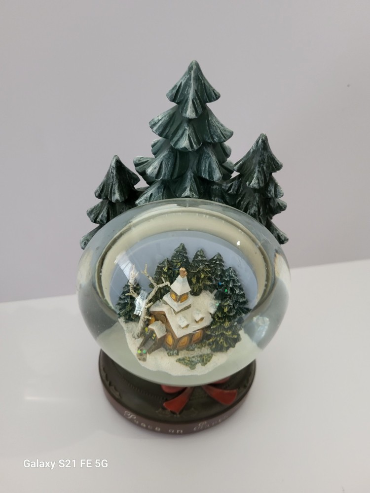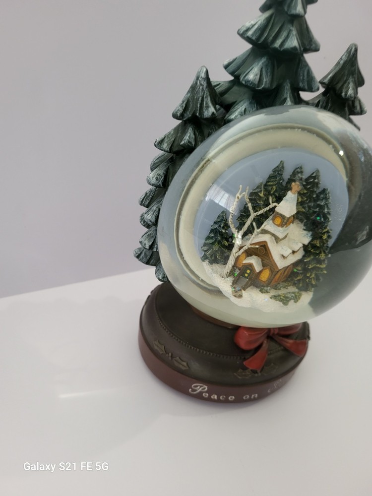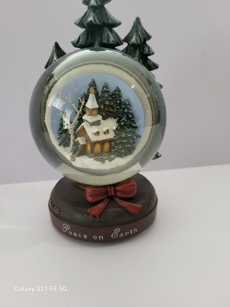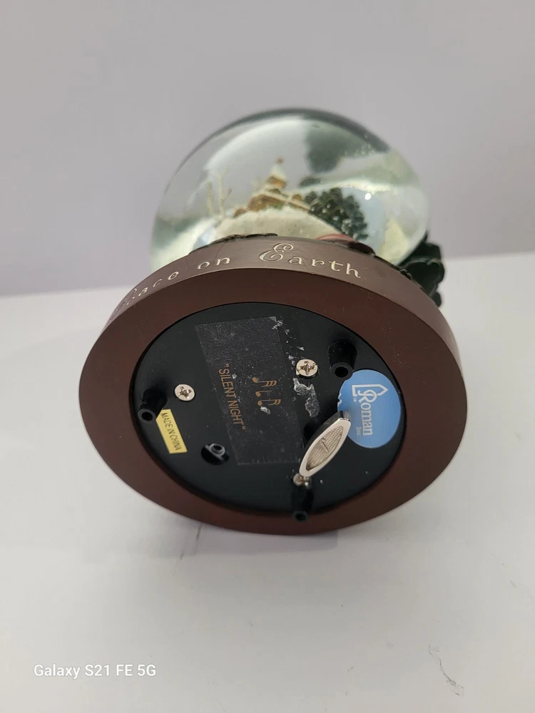 This is a vintage Roman Inc Christmas snow globe that plays the song "Silent Night" when wound up. The globe is 8 inches tall and features a multicolored snow pattern. It was manufactured in 2005 and is part of the Limited Editions collection. The globe is an original piece and has a musical feature. The theme of the globe is Christmas and it belongs to the Christmas character family.