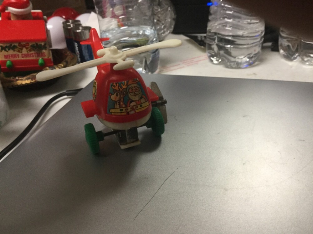 A vintage non working Helicopter wind up Hong Kong Santa and Rudolph toy, free Shipping!