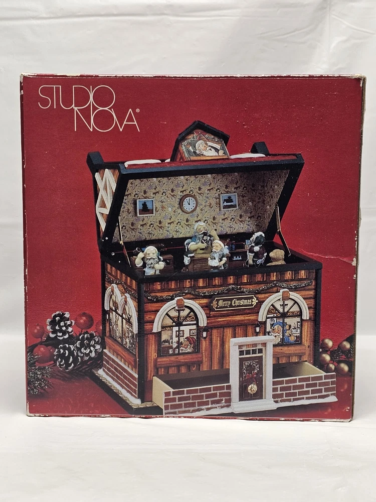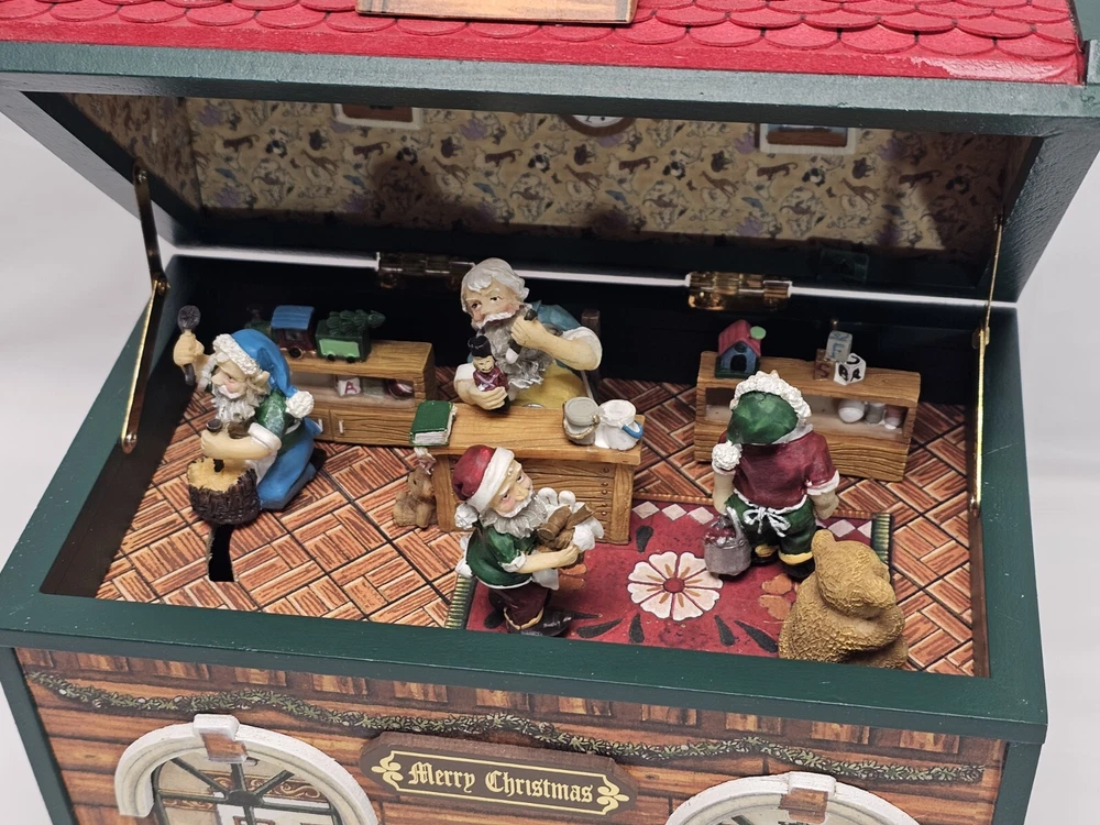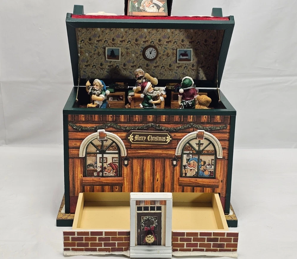 With original box Has a drawer Plays Santa Claus is coming to town Works well As with all preowned/vintage items, you may see signs of use. Please examine the photos very carefully as they are a part of the description. Shipping cost is for usps ground advantage. Package may be sent via ups ground or a faster delivery method with usps, depending on cost.