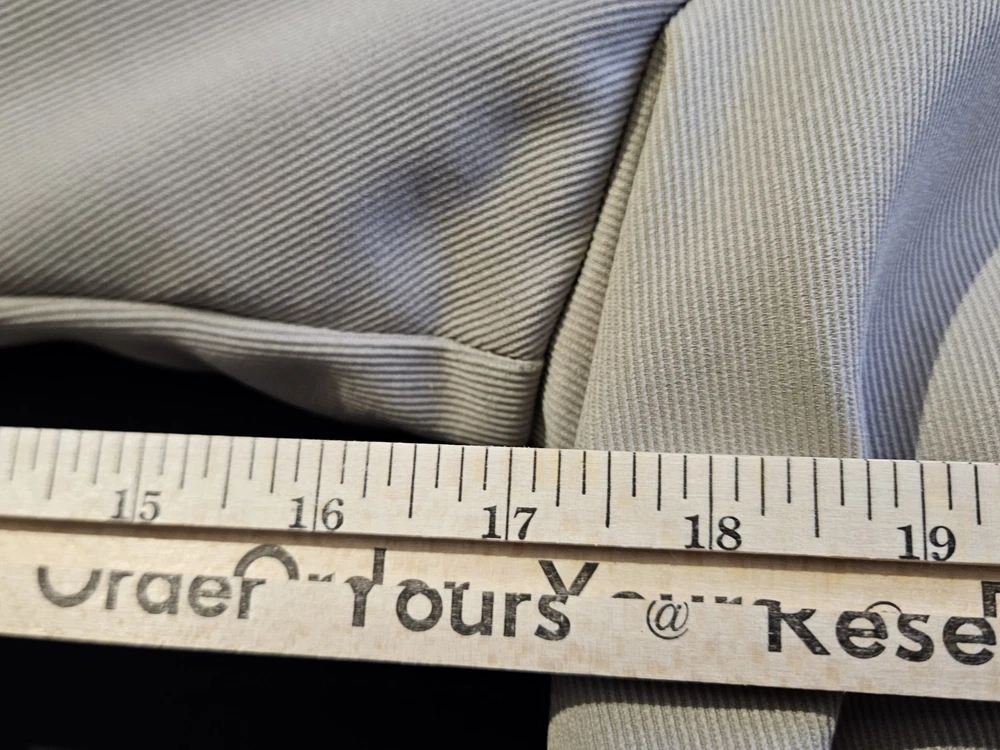 Good Condition Size XL Measurements in photos Does have some blemish shown in photos Proper cleaning may bring them out