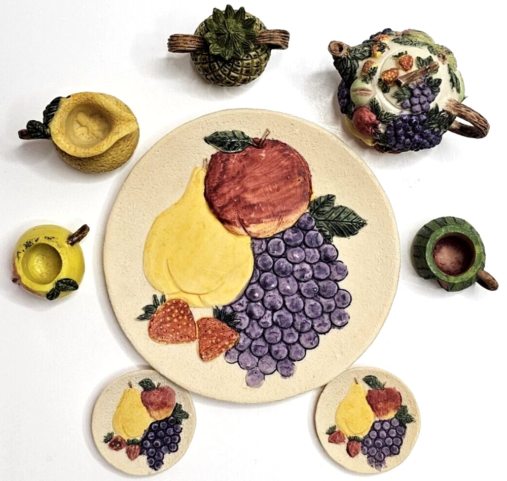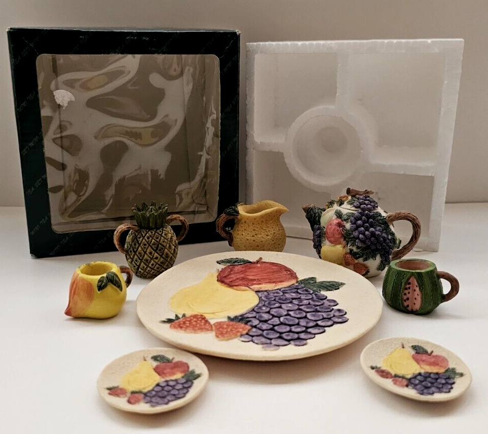Original box has sings of wear. Tea set is in very good condition. Material: Polystone Resin Please see Pictures as they are part of Description. Thank you! (YES, we do combine Shipping) BRS 50...