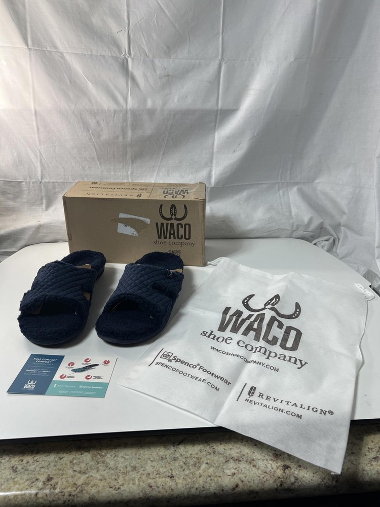 Step into comfort with these WACO slide sandals, designed for ultimate relaxation and style. Perfect for indoor lounging or casual outdoor wear, these sandals feature a soft, quilted texture and plush lining to cradle your feet. Key features include: - Durable construction for long-lasting use - Non-slip sole for safety - Stylish navy color complements any casual outfit - Easy to slip on - ideal for quick outings - Brand packaging and care instructions included Elevate your footwear collection with these versatile sandals that provide both comfort and flair!