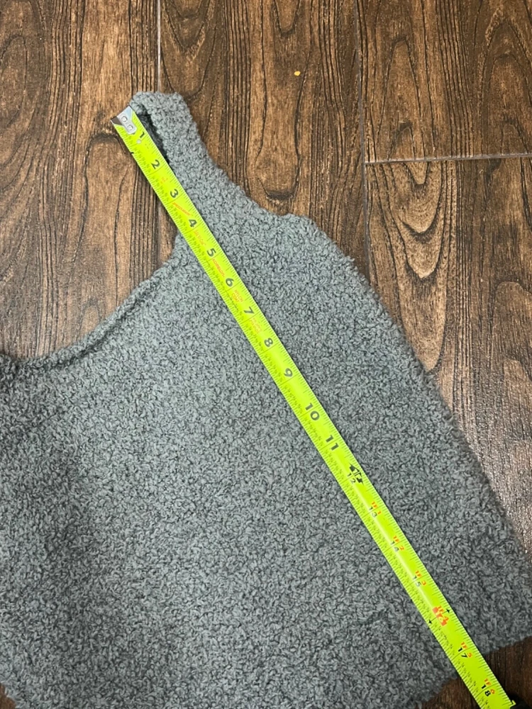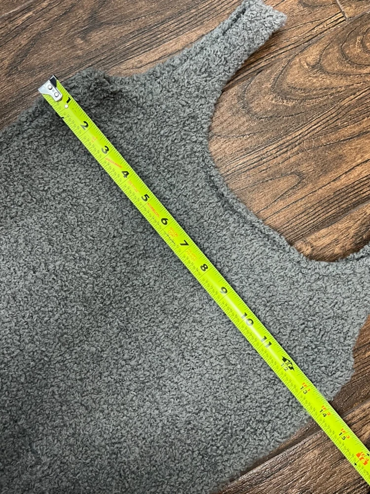 Love how soft and cozy this tank is—perfect for lounging! Fits just right, no flaws, and the fuzzy gray material feels amazing. Seller was thorough, and it arrived in great condition. Super happy with this find!