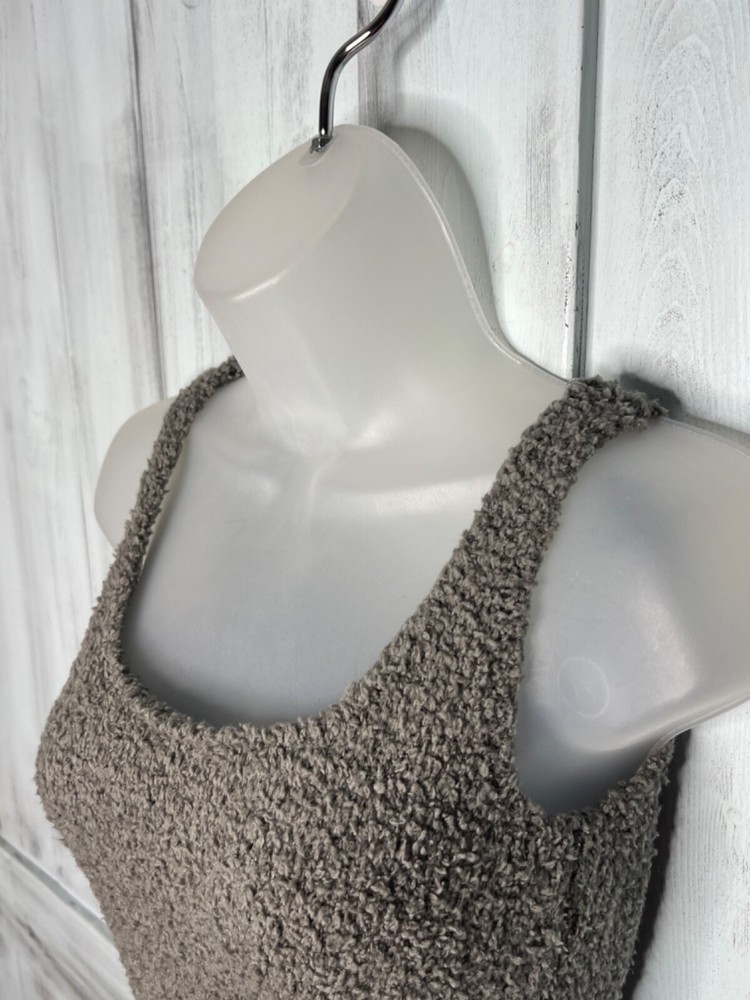 * VERY GOOD TO EXCELLENT PRE-OWNED CONDITION. I DO MY BEST TO BE THOROUGH. ALL FLAWS NOTICED WILL BE NOTED, OTHERWISE NO FLAWS DETECTED. * WOMENS SKIMS COZY COLLECTION GRAY FUZZY STRETCH CROP SOFT LOUNGE TANK TOP S/M * SIZE: S/M, Please use measurements provided to determine the best fit. * Approximate Measurements and Material Tag: See pics. * Happy to answer any question! Thanks for looking! Bin10.1.3.5.26