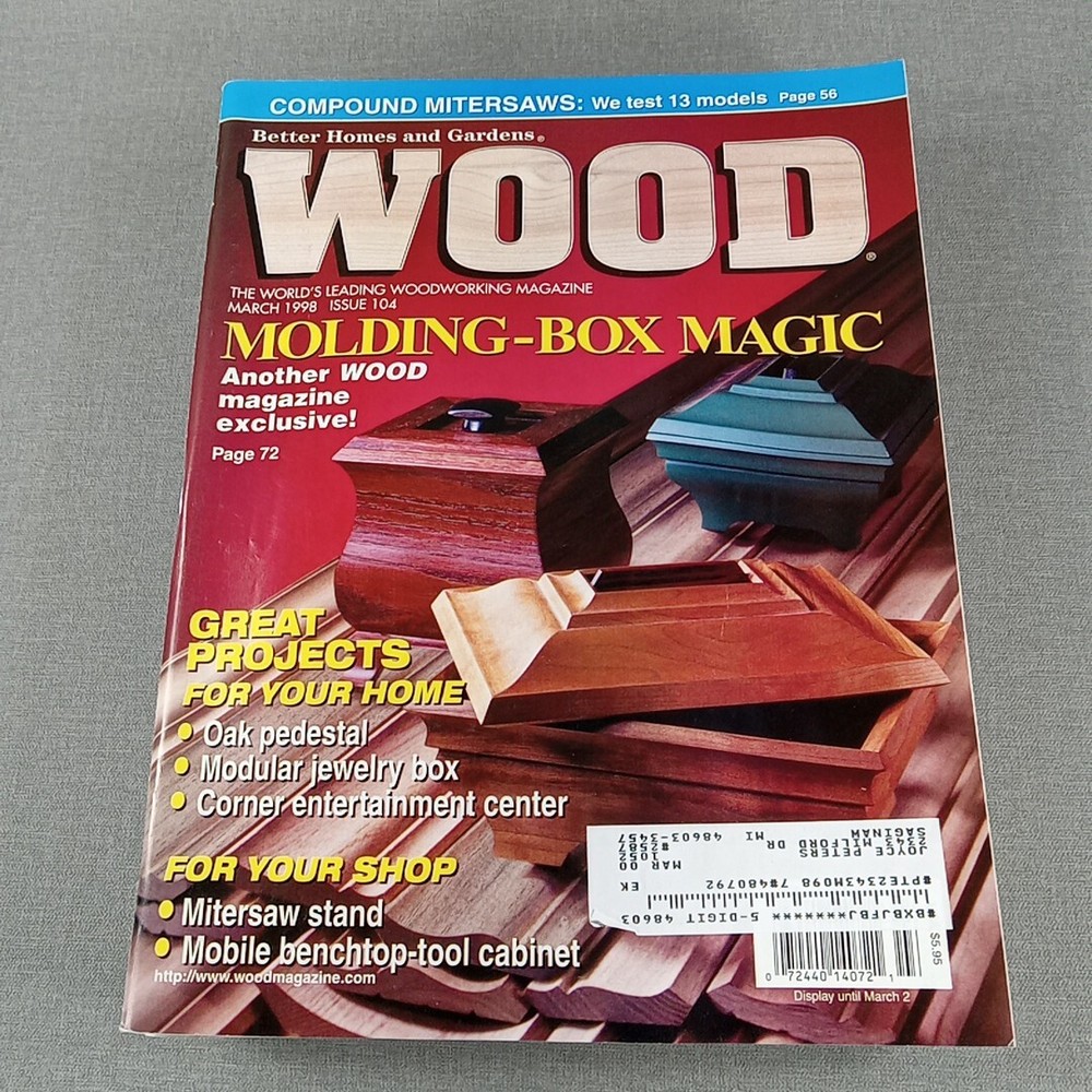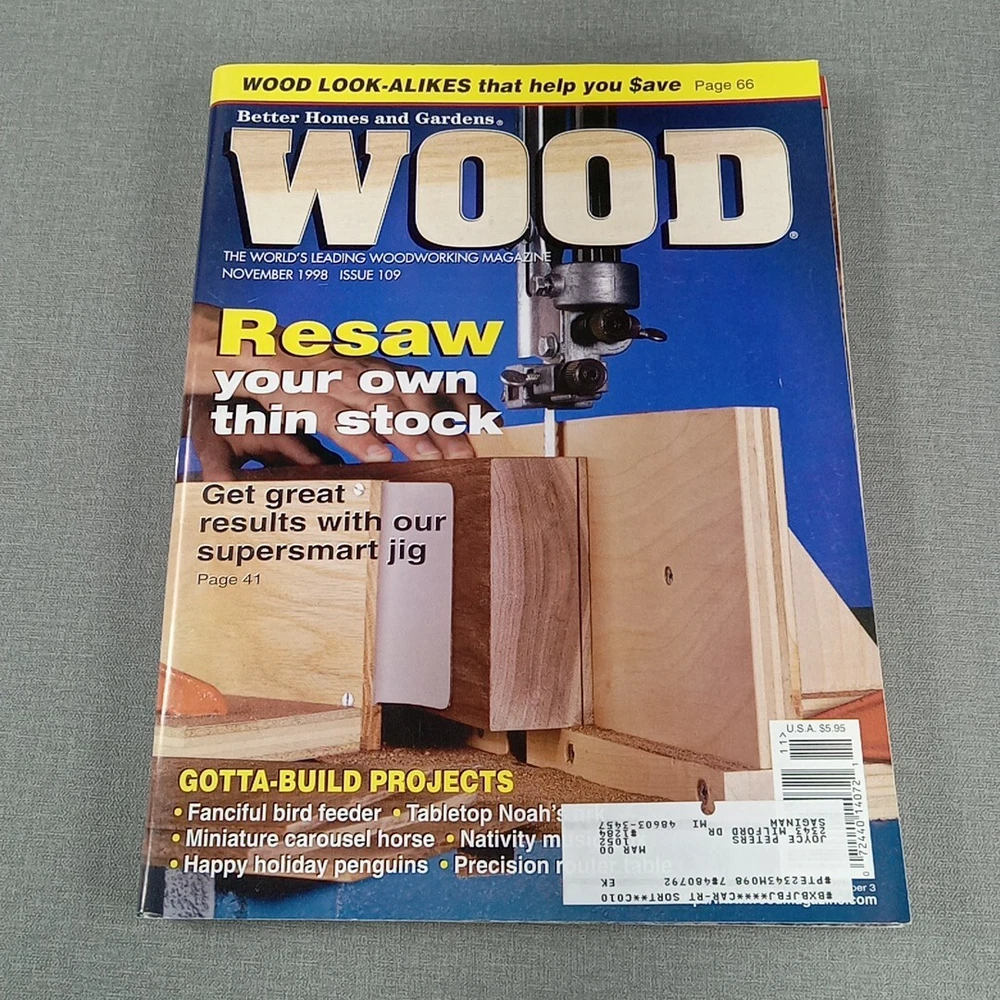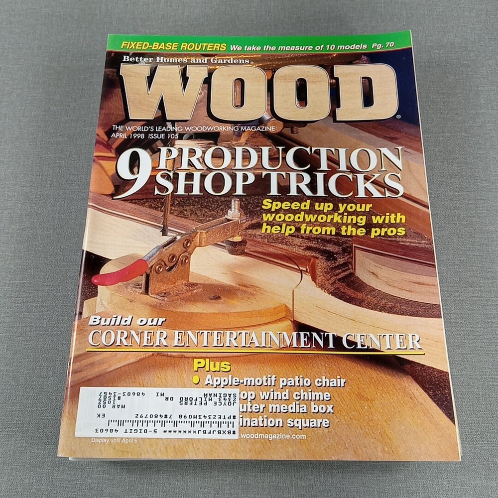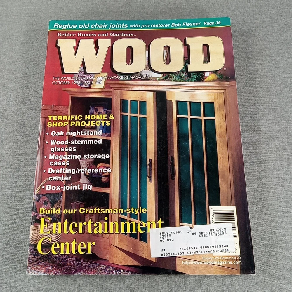 A lot of 9 WOOD magazines from 1998 published by Better Homes and Gardens. These magazines are in English, featuring illustrations, and cover topics such as 3D crafts, art, and craft books within the genres of home & garden and activity. A comprehensive collection for enthusiasts of woodworking and DIY projects.