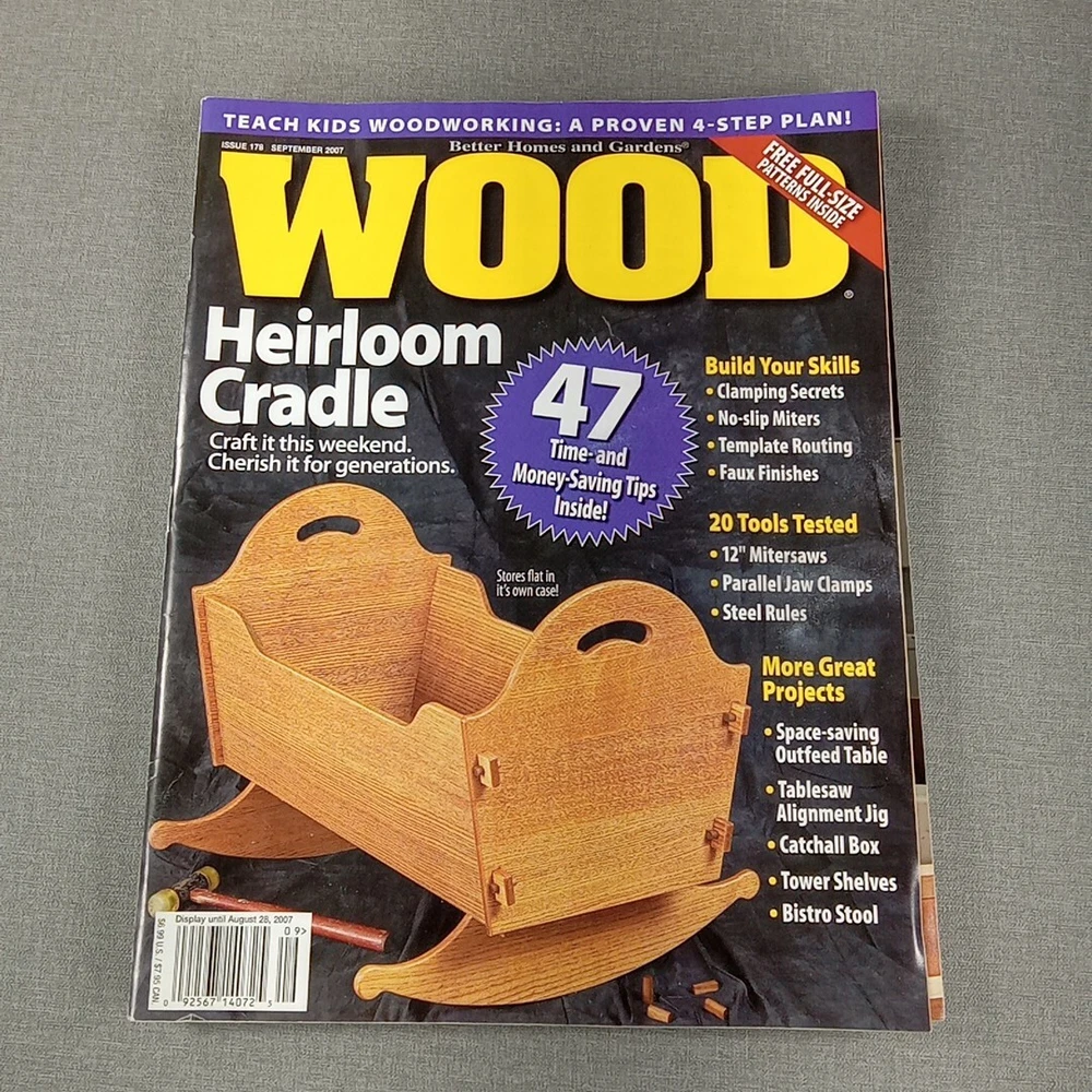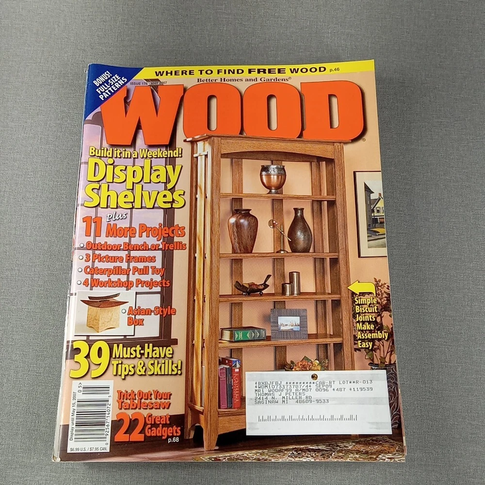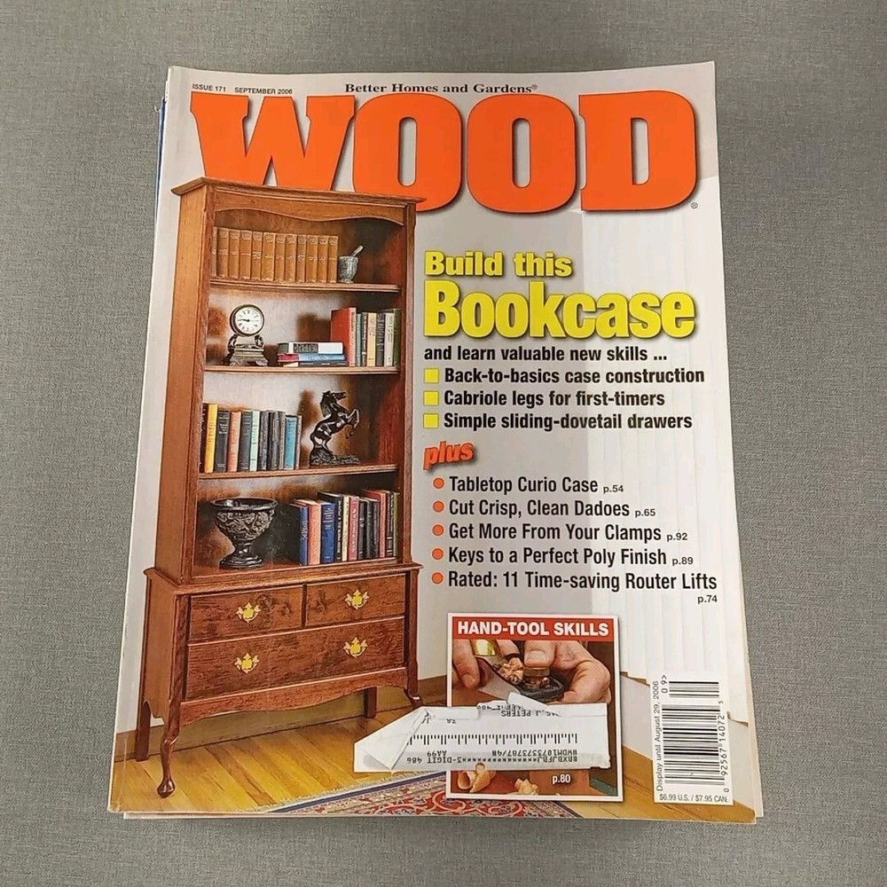 A lot of 12 WOOD magazines from 2008-2009 published by Better Homes and Gardens. The magazines are in English and feature illustrations. They cover topics such as 3D crafts, art, and craft books, making them suitable for readers interested in home & garden activities.