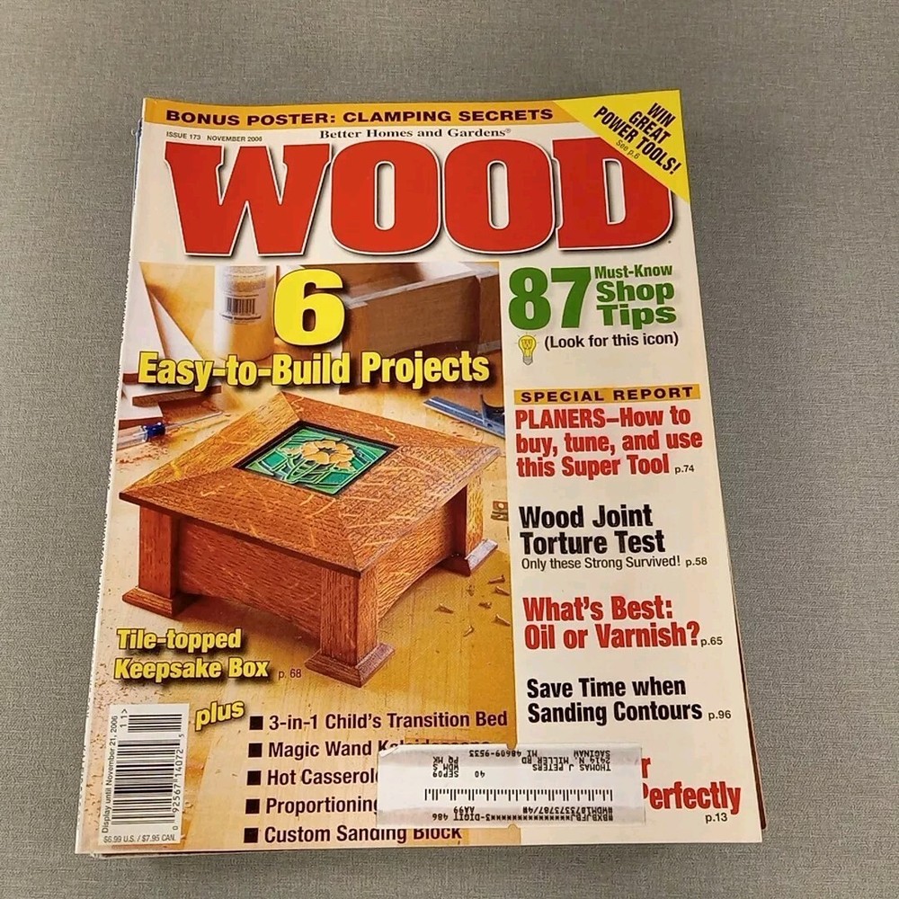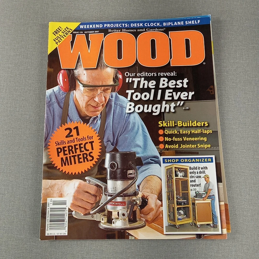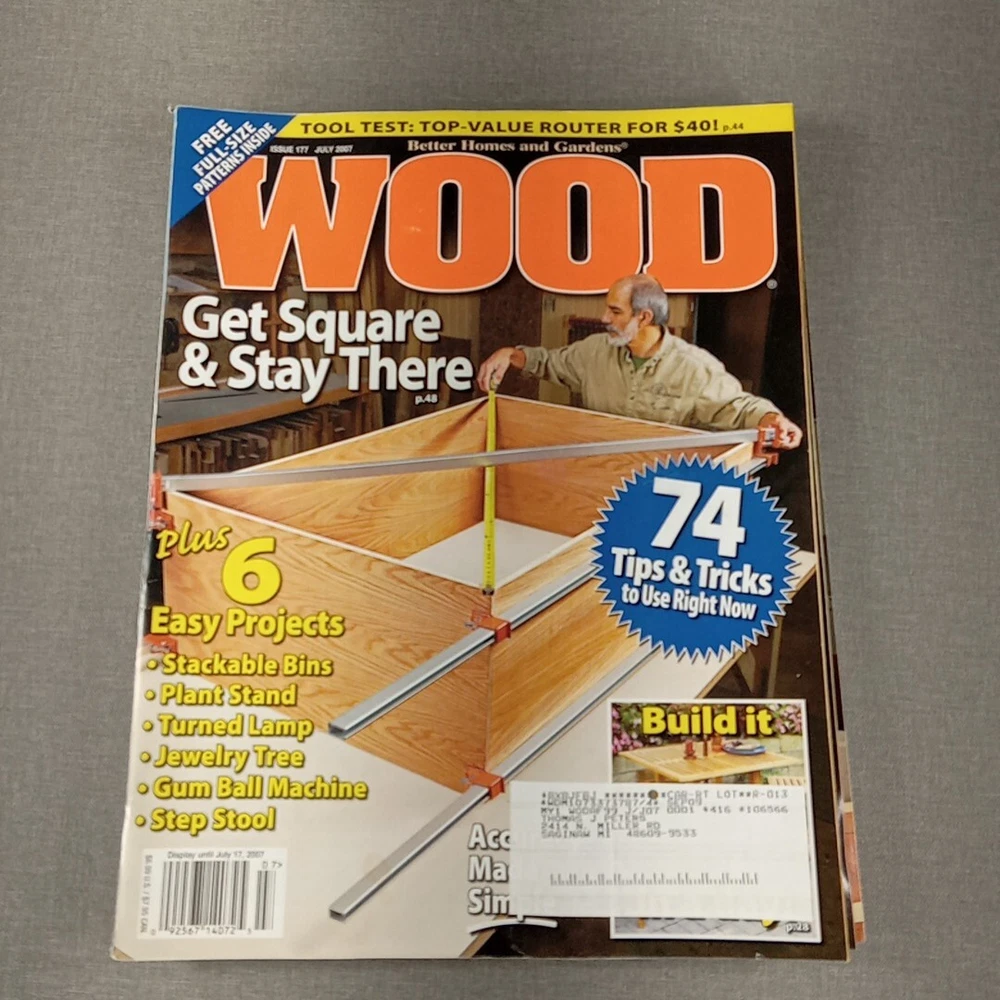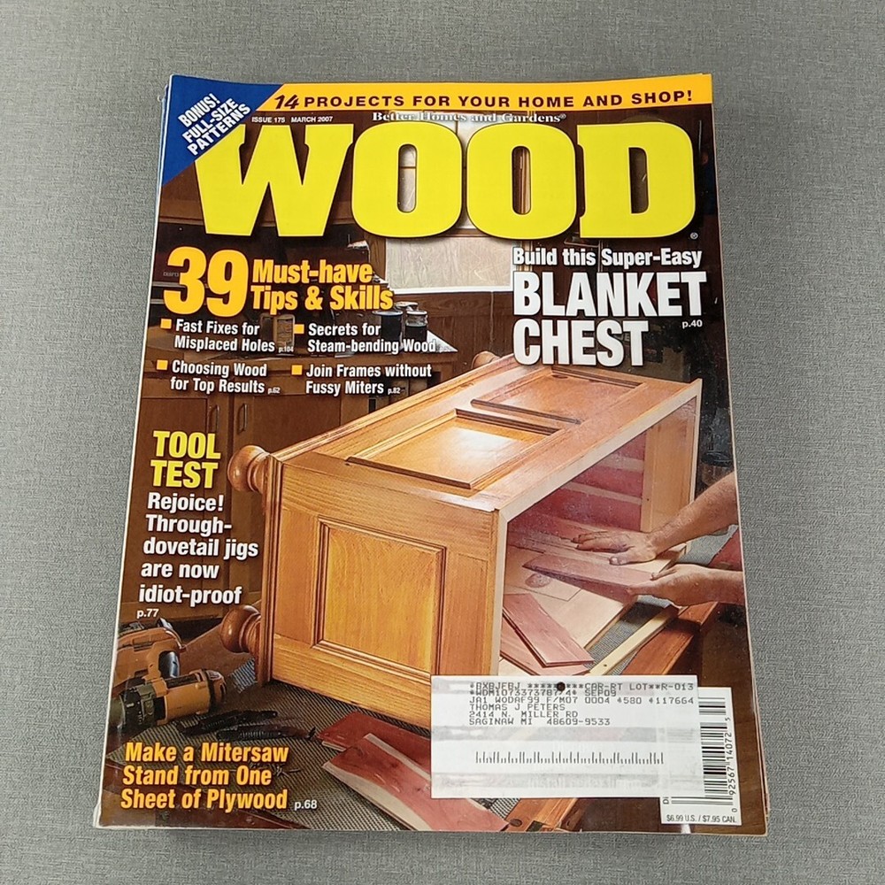 A lot of 12 WOOD magazines from 2008-2009 published by Better Homes and Gardens. The magazines are in English and feature illustrations. They cover topics such as 3D crafts, art, and craft books, making them suitable for readers interested in home & garden activities.