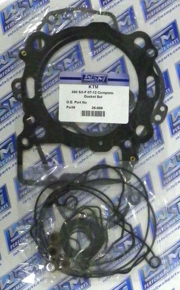 ITEM#: 25-866 COMPLETE GASKET KIT KTM 450 SMR / SX-F / XC-F 07-14 OEM#: 77330099000 BRAND: WSM FITMENTS: Make Model Year(s) KTM SMR 450 2008-2012 KTM SX-F 450 2007-2013 KTM SX-F 505 2008-2009 KTM XC-F 450 2008-2009 KTM XC-F 505 2008-2009 For more information on our policies - please click the Shipping and Payments tab or to ask a question click our store name for our home page. --