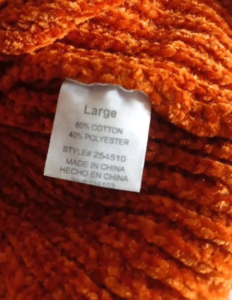 Wrap yourself in the comfort of the Warm & Cozy Lifestyle Rust Chunky Knit Sweater, a perfect blend of style and warmth. Designed for the woman who appreciates a relaxed yet chic look, this pullover sweater features a versatile solid brown hue that pairs effortlessly with any outfit. The V-neck and long sleeves offer a classic silhouette that's both flattering and functional for cooler weather. Crafted from a soft cotton blend, this sweater promises a cozy feel without compromising on fashion. Its chunky-knit texture adds a touch of modern elegance to your wardrobe, making it a go-to piece for those seeking a combination of comfort and contemporary style. Whether layered over a blouse or dressed up with a skirt, this size large sweater is sure to become a cherished staple in your collection.