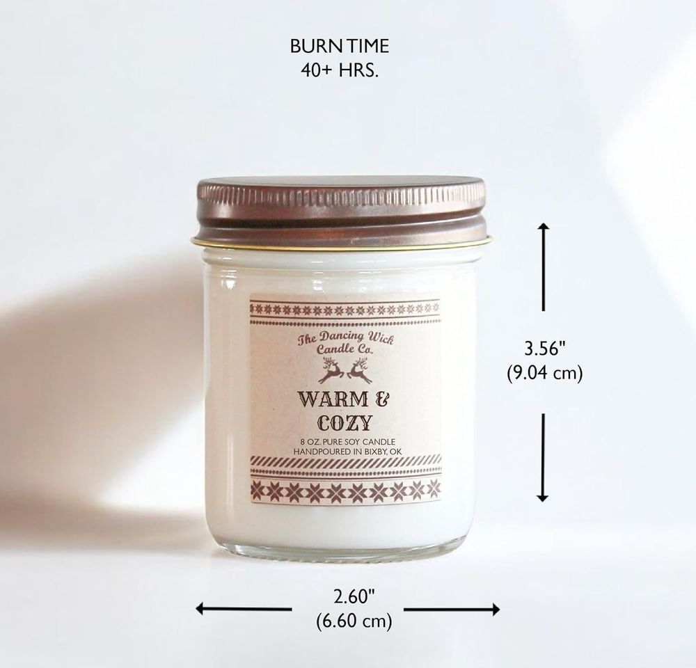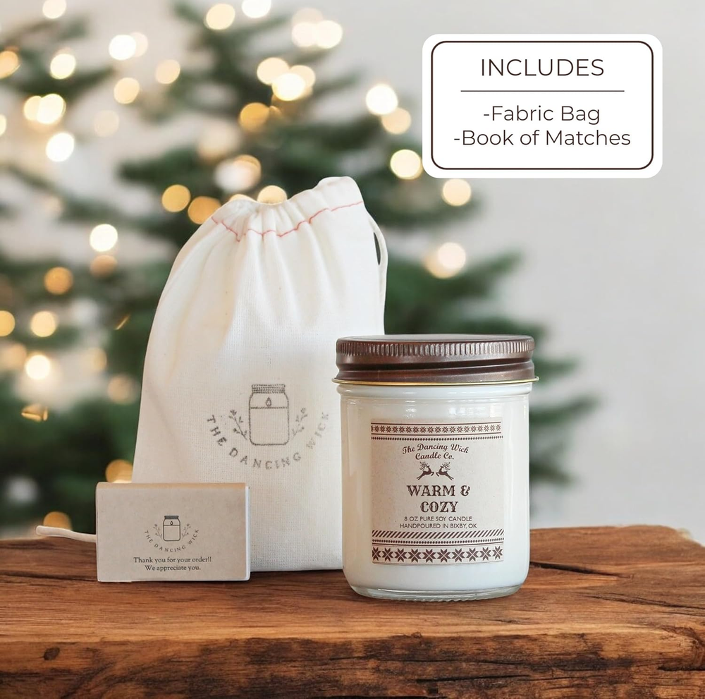 Warm & Cozy Soy Candle - Vanilla, Butterscotch, Cinnamon, Nutmeg, Cloves, Cedar, Patchouli, Amber - 8 Oz, Hand-Poured for Cozy Home - Non-Toxic - Made in USA (Warm & Cozy) Fast Shipping On All Items 30 Days Money Guarantee Customer Support Excellent Service 100% Satisfaction Satisfaction Guaranteed Just for you We care about you and we always try to offer the best service possible. We choose with love our products and we'll bring to your home using third warehouses and suppliers for the best experience possible. if you'll get any kind of problem please don't esitate to contact us, we'll do our best for finding the best solution for you. Shipping We always try to delivery the goods within 48 hours, but our maximum shipping and delivery time is between 5 and 8 days. Take in mind that some events out of our control could put in delay your order, like climatic events or logistic problems. In this case we will do the best for resolve the issue and we will get in touc withyou. Note: Some items could't be shipped in your address for some reason, like address not available with our shipping service or some particular island. So we can delete any order that can't fit with out service, and we will not take any responsability or any feedback for this. If you want know before placing the order if can be shipped, please get in touch with us before placing the order =) You can return any item within 60 days, please contact us if you have any problem or just you don't like the item. We will guide you with the right process for the faster return and refund possible. Contact us We take seriously our reputation, if you have any issue, or the item has not been delivery, please contact us before taking any action or leaving any feedback. We will work together for finding the best solution that will fit for you. Specification Color White Country of Origin USA Scent Warm & Cozy Package Dimensions 6 x 4 x 4 inches; 1 Pounds 4.0 inches x 6.0 inches x 4.0 inches. Weight: 1.0 lb Item Description Comforting, Warm & Inviting Fragrance: Wrap yourself in the soothing embrace of our Warm & Cozy candle; This fragrance combines creamy vanilla and butterscotch with a touch of cinnamon, nutmeg, and cloves, creating a perfect balance of sweet and spice; Earthy cedar, patchouli, and amber ground the scent in deep warmth, making this candle the ultimate in cozy comfort; With its soft yet captivating aroma, this candle is ideal for setting a relaxing, inviting atmosphere in any space; perfect for those who love a warm, sensual fragrance that feels like home Long-Lasting Burn Time: This 8 oz candle provides hours of cozy, warm fragrance, filling any space with the spirit of the season Non-Toxic & Eco-Friendly: Made from 100% pure soy wax; Free from phthalates and harmful chemicals; Contains lead-free cotton wick for a clean burn; Pet and child friendly Perfect for Fall and Winter: Ideal for secret Santa, stocking stuffers, and as a thoughtful gift for her or him; Suitable for any fall or winter celebration or occasion Hand-Poured Quality: Each candle is hand-poured in small batches in Bixby, OK, ensuring attention to detail and quality Embrace the ultimate comfort with our Warm & Cozy candle, a beautifully balanced blend of creamy, woodsy, and fresh aromas. The soft yet rich fragrance begins with hints of vanilla and butterscotch, creating a sweet and inviting opening. Spices like cinnamon, nutmeg, and cloves add a warm, nostalgic touch, while earthy cedar, patchouli, and amber ground the scent in cozy sophistication. This warm and sexy fragrance offers a gentle yet captivating experience, perfect for creating a soothing atmosphere in any space. Hand-poured in Bixby, OK, this 8 oz pure soy candle brings a luxurious, comforting ambiance to your home, making it the ideal companion for cozy nights in and moments of relaxation. Whether you're unwinding after a long day or setting the mood for a special evening, Warm & Cozy is your perfect go-to candle for a comforting, inviting atmosphere all year round. We offer the best prices around on high quality products. Our E-store includes media such as books, movies, music and games while offering electronics, toys, sporting apparel, clothing, tools, general home, garden items and more. Payment Options Shop With Confidence