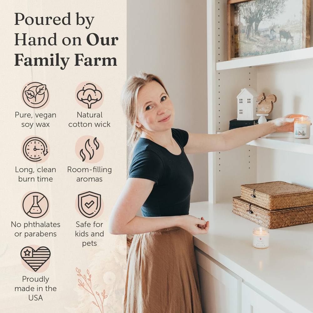 This candle fills my home with the most comforting, cozy scent—like a warm hug on a chilly day! The blend of vanilla, butterscotch, and spices is perfectly balanced, not too sweet or overpowering. It burns cleanly and lasts a long time. Love that it's non-toxic and hand-poured in the USA. Highly recommend for anyone who loves a relaxing, inviting atmosphere!