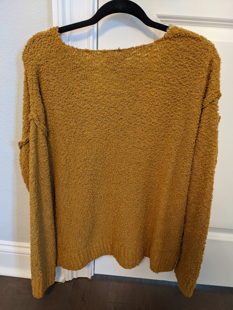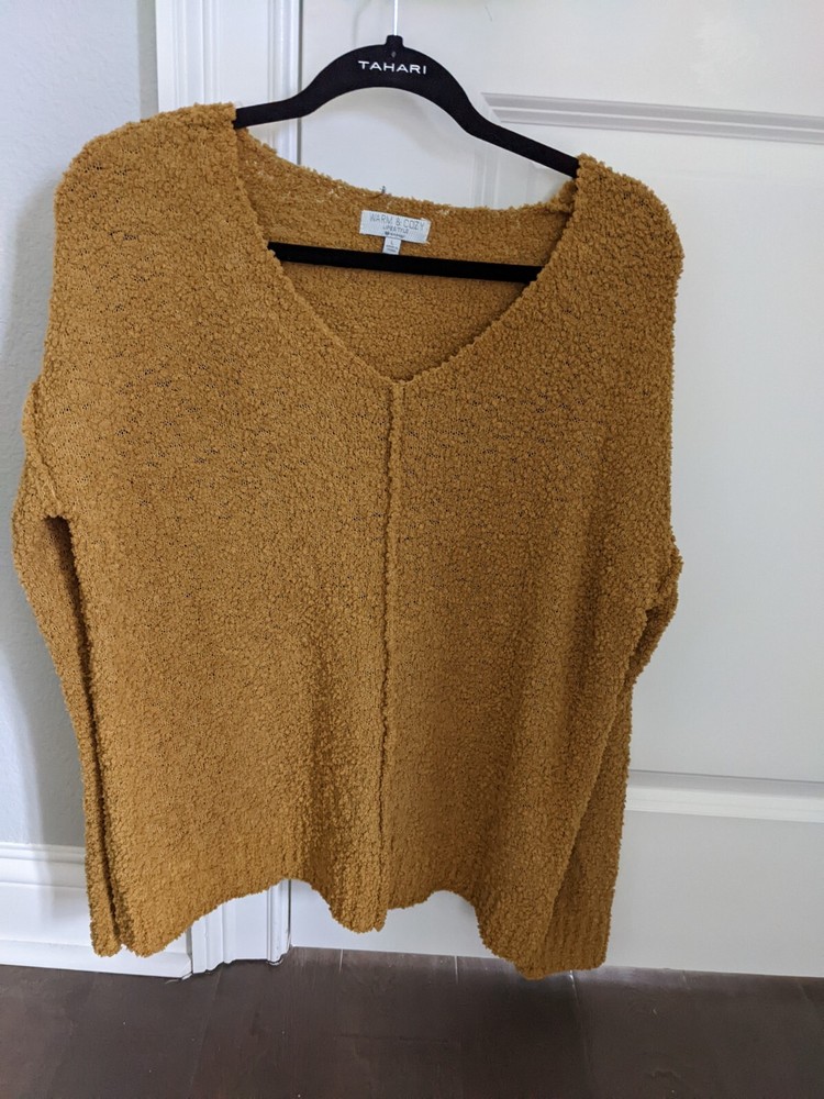 Warm & Cozy - Women's pullover v-neck top size large in excellent used condition. 60% Cotton, 40% Acrylic. D15 Measurements are: Armpit to armpit is 30 inches. Length is 28 inches . From a smoke-free home. We do have a small dog. I will gladly combine shipping charges depending on size and weight. I ship to United States only. I would appreciate payment within 3 days of auction end. Please contact me if there is a problem. I am happy to work with you if I know you want the item. Thank you for looking, and have a great day! R eturns on "new with tags" items must be unworn with tags still attached to receive full refund .