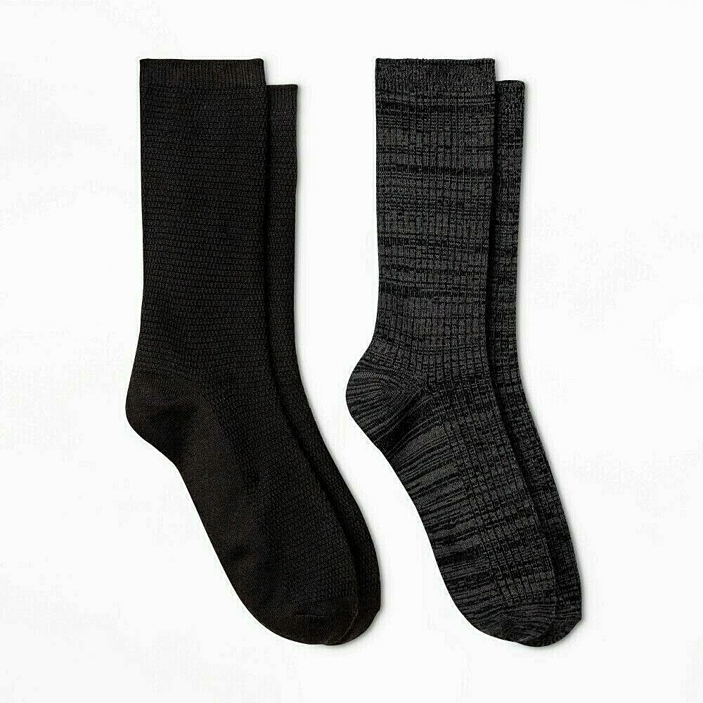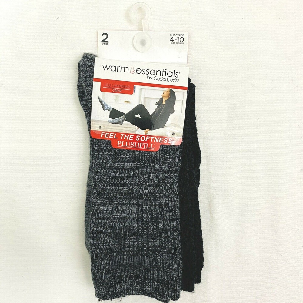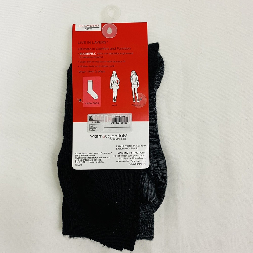Warm Essentials by Cuddl Duds Leg Layering Crew Socks 2 pair Shoe Size 4-10 NEW on hang card Super soft feel with PLUSFILL yarn. 99% Polyester 1% Spandex Machine wash and dry Color : 1 pair black, 1 p...