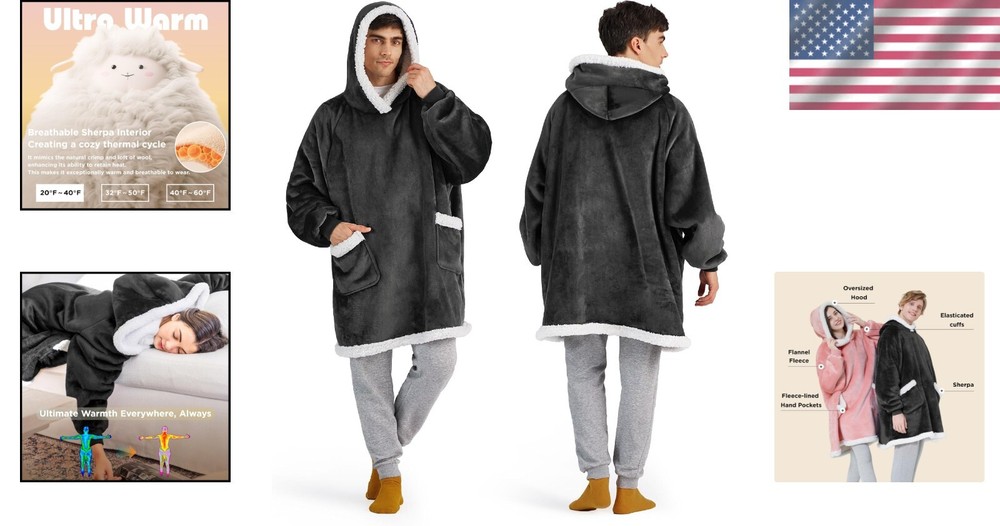 Warm and Stylish Sherpa Blanket Hoodie - Machine Washable Oversized Gift ‹ › ‹ › ‹ › ‹ › ‹ › ‹ › ‹ › ‹ › Warm and Stylish Sherpa Blanket Hoodie Machine Washable Oversized Gift 100% Polyester, Imported. Ultra-soft blanket hoodie available in multiple sizes and colors. Perfect as gifts for women, men, and as thoughtful gifts for moms. Ideal for birthdays, Christmas, and winter occasions that bring warmth and comfort. Exceptional Warmth: The outer flannel fabric feels incredibly soft, while the inner sherpa lining provides dependable warmth, making it perfect for the chilly winter months. This wearable blanket is not just a style statement, but a shield against the cold. Versatile Comfort: Free your arms while enjoying warmth and comfort, whether reading, watching TV, or lounging. An excellent gift for grandma, wife, or sister, providing coziness on colder days. Convenient Features: Deep side pockets for holding small items or warming your hands. Ribbed cuffs secure a snug fit, preventing cold air from seeping in. Built to Last: This standard 100 by OEKO-TEX certified blanket hoodie features strong, neat stitching for enhanced durability. Machine washable and crafted using a special dyeing process to prevent fading, it is ideal for any gifting occasion, including Anniversaries, Valentine's Day, Mother's Day, and more. Why Choose Our Sherpa Blanket Hoodie? Looking for the perfect combination of comfort and practicality? Look no further. Our Warm and Stylish Sherpa Blanket Hoodie is not just a gift; it's an experience. Ideal for those who appreciate cozy living, this blanket hoodie ensures warmth without compromising on style, making it one of the best gifts you can give this season. Pamper your loved ones with the gift of snuggly comfort today! Shipping Free & Fast Shipping - We offer free shipping to most of the USA with a normal delivery time of 3-7 days. However, due to the current situation, additional delivery time (up to 3 weeks) may be required for some items. Alternative Carriers - We may use alternative carriers (e.g. USPS, FedEx, UPS, etc.) to ensure your package arrives safely and on time. Due to the use of multiple carriers, we are unable to provide a tracking number automatically. Handling Time - Orders are processed and shipped within 1-2 business days of receiving cleared payment. Shipping Restrictions - Shipping to Alaska, Hawaii, Puerto Rico, Guam, and other US territories may incur shipping charges or delivery restrictions. Please contact us before ordering, or your order can be refunded/cancelled. State Restrictions - There may be restrictions based on your state of purchase. For example, certain items may not be shipped to California due to state regulations. Contact for Tracking Updates - If you require tracking updates or have any concerns about the delivery of your order, please feel free to contact us, and we will be happy to assist you. Return 30-Day Hassle-Free Returns - We want you to be completely satisfied with your purchase. If you are not, you can return the item within 30 days of receiving it for a full refund or exchange. Easy Return Process - To start a return, simply contact us and we will provide you with a prepaid return shipping label and detailed instructions. Restocking Fee - There are no restocking fees for returns. However, the buyer is responsible for return shipping costs if the return is not due to a seller's error. Refund Processing Time - Refunds will be processed within 5 business days of receiving the returned item in its original condition. Payment We accept all major credit cards, PayPal, and Apple Pay for your convenience. Your payment information is secure and encrypted to ensure a safe and seamless transaction. Please complete your payment within 3 days of purchase to avoid any delays in shipping. Feedback Your feedback is extremely important to us. We strive to provide the best products and customer service possible. If you are satisfied with your purchase, please take a moment to leave us a positive review. If you have any concerns or issues with your order, please contact us before leaving negative feedback. We are committed to resolving any problems and ensuring your satisfaction. Contact Us If you have any questions or concerns, please feel free to reach out to our customer support team. You can contact us through the eBay messaging system. We are available Monday to Friday, 9:00 am to 5:00 pm EST, and we will do our best to respond to your inquiry within 24 hours. Buy it now and enjoy a pleasant shopping experience! UPC: Not Set Item Length: Wearable Blanket Hoodie Item Width: Wearable Blanket Hoodie Unit Quantity: 3.31 Material: 100% Polyester Features: Machine Washable,Deep Side Pockets,Ribbed Cuffs Character: Not Set Theme: Not Set Care Instructions: Machine Wash Department: Unisex Adult Room: Living Room Labels & Certifications: Not Set Brand: Unbranded Size: Oversize Type: Wearable Blanket Hoodie Character Family: Not Set Color: Grey Black Pattern: Not Set Style: Cozy MPN: Not Set Country/Region of Manufacture: Not Set Insulation: Warm Shape: Rectangular Closure Type: No Closure Drop Length: Not Set Thread Count: Not Set GSM (Grams per Square Meter): Not Set Model: Not Set Product Line: Not Set Unit Type: lb Personalize: Not Set