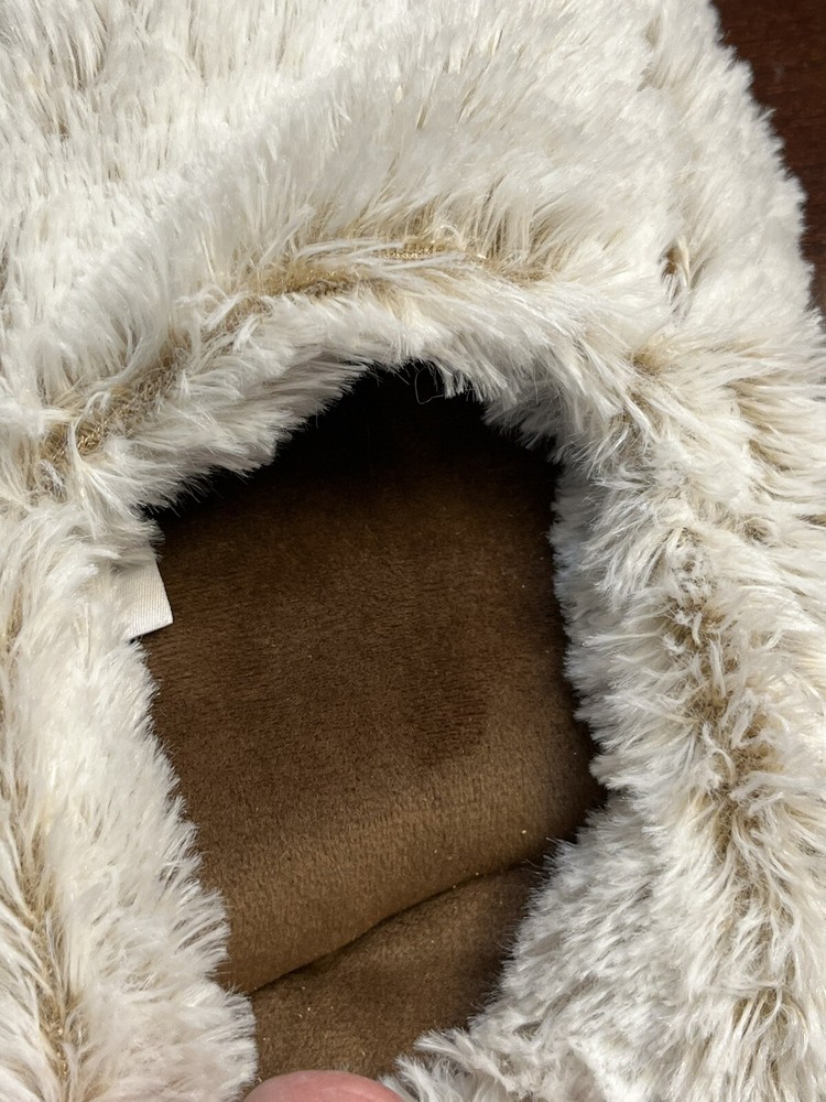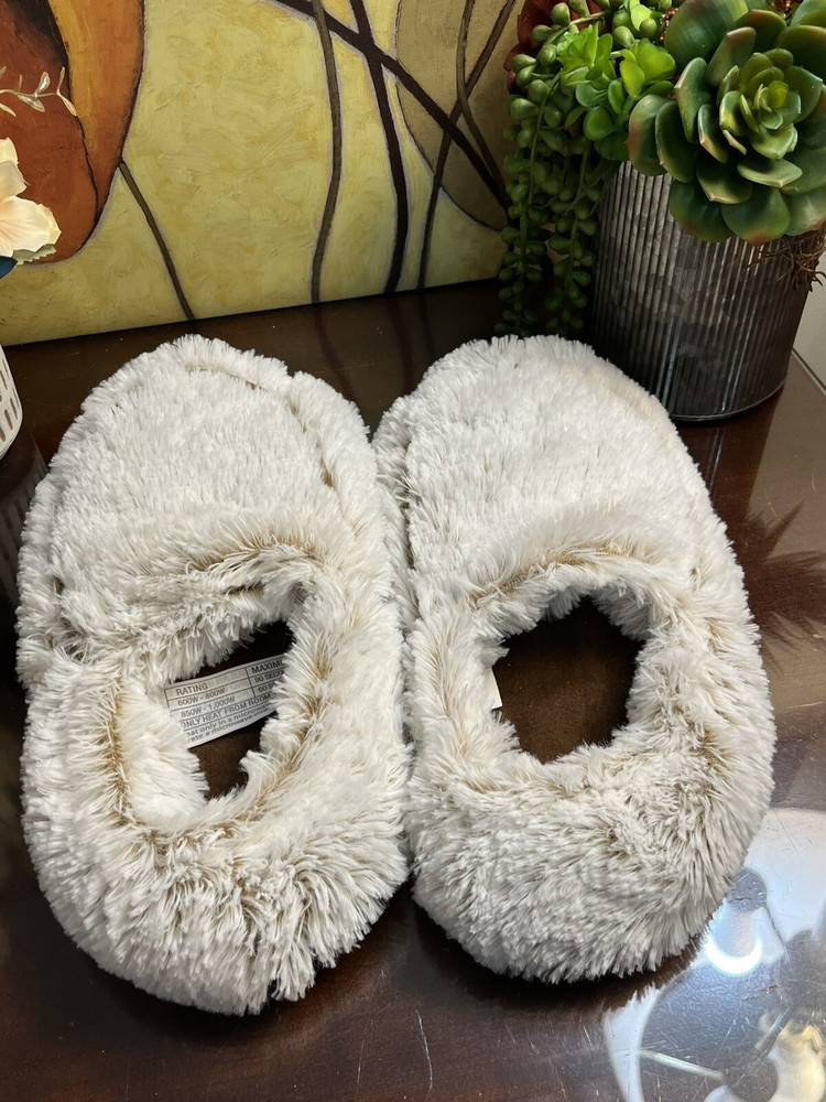 The Warmies Lavender Scented Microwavable Slippers are cozy and snuggly footwear designed for women in a size range of 6-10. These cream-colored slip-on slippers feature a solid pattern with fur trim accents for added style. The slippers are constructed with a polyester upper material, memory foam insole, and rubber outsole for comfort and durability. They are designed for casual wear during the winter and fall seasons, providing warmth and cushioning with a lavender scent for added relaxation. Perfect for those looking for comfortable and soothing footwear at home.