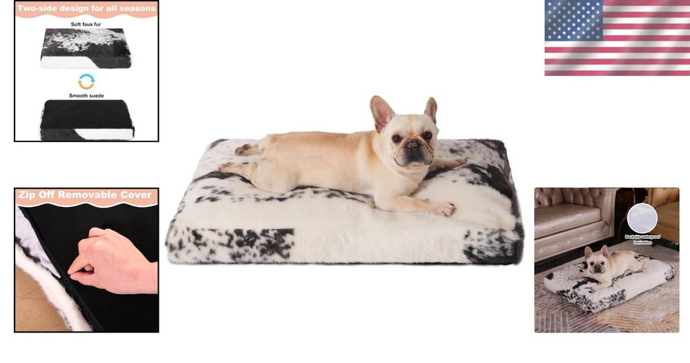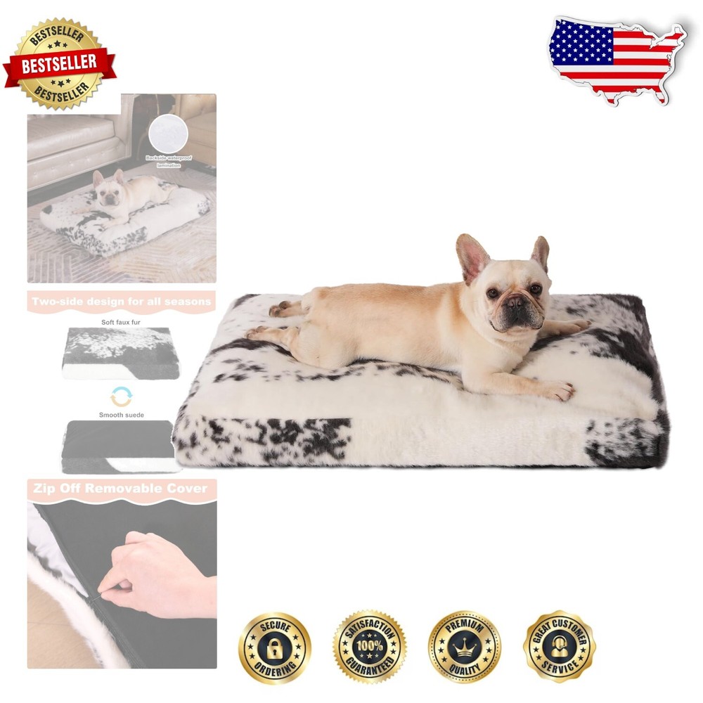 Waterproof Faux Fur Dog Bed 35''x23'' - Large Crate Mat for Cozy Comfort < class="slides"> ‹ › ‹ › ‹ › ‹ › ‹ › ‹ › ‹ › ‹ › ‹ › Waterproof Faux Fur Dog Bed - 35"x23" Large Crate Mat for Cozy Comfort Luxurious Design: Crafted from high-quality, waterproof cowhide faux fur fabric for a soft, cozy touch. Designed to provide a calming and secure environment for your furry friends, ensuring they feel right at home. Features a waterproof backside lamination, protecting the interior stuffing from accidents. Exceptional Support: Thick dog pad filled with 3.5-inch high-rebound stuffing, offering a perfect balance of support and softness. Ideal for pets who love to snuggle and relax after playtime. Dual-Sided Comfort: One side features ultra-soft faux fur, providing warmth and coziness during chilly winter . The reverse side boasts durable suede fabric, ideal for keeping your pet cool in the summer heat. Convenient Maintenance: Removable cover allows for easy adjustment to the filling, ensuring optimal comfort for your pet. Machine washable cover simplifies cleaning, making it easier to maintain freshness and extend the life of your dog bed. Perfect Size: Measures 35"L x 23"W x 3.5"H, suitable for dogs weighing up to 65 lbs. Compatibility with crates sized 36" x 23" ensures a perfect fit for your pet's crate. Recommended to measure your pet and crate size before making a purchase to ensure satisfaction. Why Choose Our Waterproof Faux Fur Dog Bed? Your pet deserves nothing but the best. Our Waterproof Faux Fur Dog Bed offers luxurious comfort, advanced functionality, and stylish design, making it the perfect retreat for your furry companion. With its dual-sided materials and easy-clean features, this bed is ideal for every season and is designed to provide long-lasting luxury and care. Treat your dog to the ultimate resting experience. Order now and elevate your pet’s comfort! Shipping Free & Fast Shipping - We offer free shipping to most of the USA with a normal delivery time of 3-7 days. However, due to the current situation, additional delivery time (up to 3 weeks) may be required for some items. Alternative Carriers - We may use alternative carriers (e.g. USPS, FedEx, UPS, etc.) to ensure your package arrives safely and on time. Due to the use of multiple carriers, we are unable to provide a tracking number automatically. Handling Time - Orders are processed and shipped within 1-2 business days of receiving cleared payment. Shipping Restrictions - Shipping to Alaska, Hawaii, Puerto Rico, Guam, and other US territories may incur shipping charges or delivery restrictions. Please contact us before ordering, or your order can be refunded/cancelled. State Restrictions - There may be restrictions based on your state of purchase. For example, certain items may not be shipped to California due to state regulations. Contact for Tracking Updates - If you require tracking updates or have any concerns about the delivery of your order, please feel free to contact us, and we will be happy to assist you. Return 30-Day Hassle-Free Returns - We want you to be completely satisfied with your purchase. If you are not, you can return the item within 30 days of receiving it for a full refund or exchange. Easy Return Process - To start a return, simply contact us and we will provide you with a prepaid return shipping label and detailed instructions. Restocking Fee - There are no restocking fees for returns. However, the buyer is responsible for return shipping costs if the return is not due to a seller's error. Refund Processing Time - Refunds will be processed within 5 business days of receiving the returned item in its condition. Payment We accept all major credit cards, PayPal, and Apple Pay for your convenience. Your payment information is secure and encrypted to ensure a safe and seamless transaction. Please complete your payment within 3 days of purchase to avoid any delays in shipping. Feedback Your feedback is extremely important to us. We strive to provide the best products and customer service possible. If you are satisfied with your purchase, please take a moment to leave us a positive review. If you have any concerns or issues with your order, please contact us before leaving negative feedback. We are committed to resolving any problems and ensuring your satisfaction. Contact Us If you have any questions or concerns, please feel free to out to our customer support team. You can contact us through the eBay messaging system. We are available Monday to Friday, 9:00 am to 5:00 pm EST, and we will do our best to respond to your inquiry within 24 hours. Buy it now and enjoy a pleasant shopping experience! Unit Quantity: 6.86 Features: Machine Washable,Removable Cover,Waterproof,Soft,Cozy,Durable Suede,High-Rebound Stuffing,Two-Sided Design,Anti-Slip,Easy Adjustment to Filling Dog Size: L Type: Crate Pad Dog Breed: Bulldog Material: Faux Fur Unit Type: lb