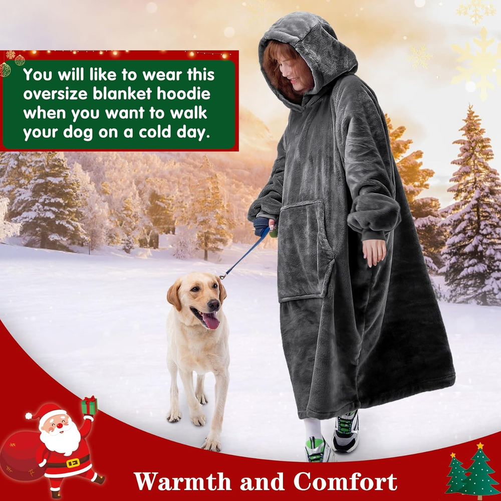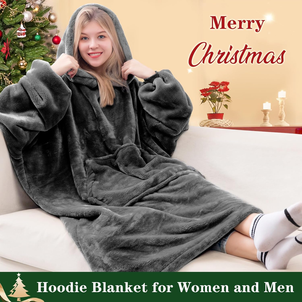 Wearable Blanket Sweatshirt Gifts for Women and Men, Warm and Cozy Giant Blanket Hoodie, Thick Flannel Blanket with Sleeves and Giant Pocket - Dark Gray 100% Polyester Imported FLUFFY HOODED BLANKET: This is a true oversized hoodie blanket for women and men. It is designed for customers looking for softness. Cozy and warm, a must have for enjoying happy hours. It is perfect for lounging at home, watching TV, gaming, reading a book, napping, or any camping or outdoor activities. MAXIMUM COMFORT: Blanket hoodie with sleeves cover shoulders, arms, allows you to move around, use your hands freely. The big plush hood keeps your head toasty warm and long enough to wrap your legs free to move without curling up that keep you warm from head to toe. INTIMATE DETAIL DESIGN: Cozy plush fabric for soft touch. A perfect size for women men. There is a big pocket to hide the TV remote, phone, snacks, and more with ease of access. You can pull your hands inside for extra warmth and take your warmth wherever you go. PERFECT GIFT: It’s the best gift for Christmas, birthday, Thanksgiving, Mother's Day, Father's Day and anyother special occasion. This blanket hoodie is the best present for wife, best gifts for husband, best gifts for mom, best gifts for dad, best gifts for girlfriend boyfriend teenagers and etc. EASY CARE: Sincerely recommend that you wash this giant blanket separately before you use it. Machine washable long wearable blanket in cold water, tumble dry on low heat, no ironing or expensive cleaning required! This oversized hoody blanket stays the same after every wash. Product Description The video showcases the product in use. The video guides you through product setup. The video compares multiple products. The video shows the product being unpacked. Super Warm and Cozy Giant Blanket Hoodie Like A Warm Hug Large size is just the right size for you! Designed to keep you warm and cozy from head to toe. Offer Extra Warmth! Large Hood The hood is roomy and makes it easy to wrap your head and neck inside to keep toasty warm. Nice Additions Design Big Pocket Big pocket to hide the TV remote, phone, snacks and more, pull your hands inside for extra warmth. Use your hands freely Blanket hoodie with sleeves cover shoulders, arms, allows you to move around. 1 Large Hood 2 Big Pocket 3 Elastic Cuffs Waitu Wearable Blanket Sweatshirt to Various Family Members Add to Cart Add to Cart Customer Reviews 4.8 out of 5 stars 25,975 4.8 out of 5 stars 26 4.8 out of 5 stars 25,975 4.8 out of 5 stars 25,975 4.8 out of 5 stars 25,975 Price $23.99 $ 23 . 99 $39.99 $ 39 . 99 $31.99 $ 31 . 99 $43.99 $ 43 . 99 $23.19 $ 23 . 19 Inner Lining & Outer Material Thick Flannle & Soft Plush Thick Flannle & Soft Plush Warm Sherpa & Soft Velvet Warm Sherpa & Soft Plush Thick Flannle & Soft Plush Applicable Occasion Indoor & Outdoor Indoor & Outdoor Indoor & Outdoor Indoor & Outdoor Indoor & Outdoor Age Range Description Adults & Teens Adults & Teens Adults & Teens Adults & Teens Kids Applicable Season All Year Round All Year Round All Year Round All Year Round All Year Round Care Instructions Machine Wash Machine Wash Machine Wash Machine Wash Machine Wash Closure Type Pull-On Style Modern Color Dark Gray Pattern Solid Fabric Type 100% Polyester Material Polyester & Polyester Blend Size Adult Occasion Lounging Collection Name Winter Product Care Instructions Machine Wash Fit Type Relaxed Shipping Fast shipping is very important for us. Our standard US shipping service is FREE. Your order will be shipped within 2-3 business days upon full payment received. Your order will be delivered within 2-3 business days after the handling time. We only ship to the confirmed PayPal address. We reserve the right to cancel any order for any reason at any time. We are not responsible for undeliverable addresses. Returns and payment We offer a 30 days return policy from checkout winning date. We allow only PayPal as payment method FeedBack Your feedback very important to us, after you get your package and you are satisfied with our service please leave us positive feedback If you have any problem with your order / any questions please before leave any type of feedback For any questions, using eBay contact system Please visit our eBay store to check out other items for sale! Thank you for shopping at our store.