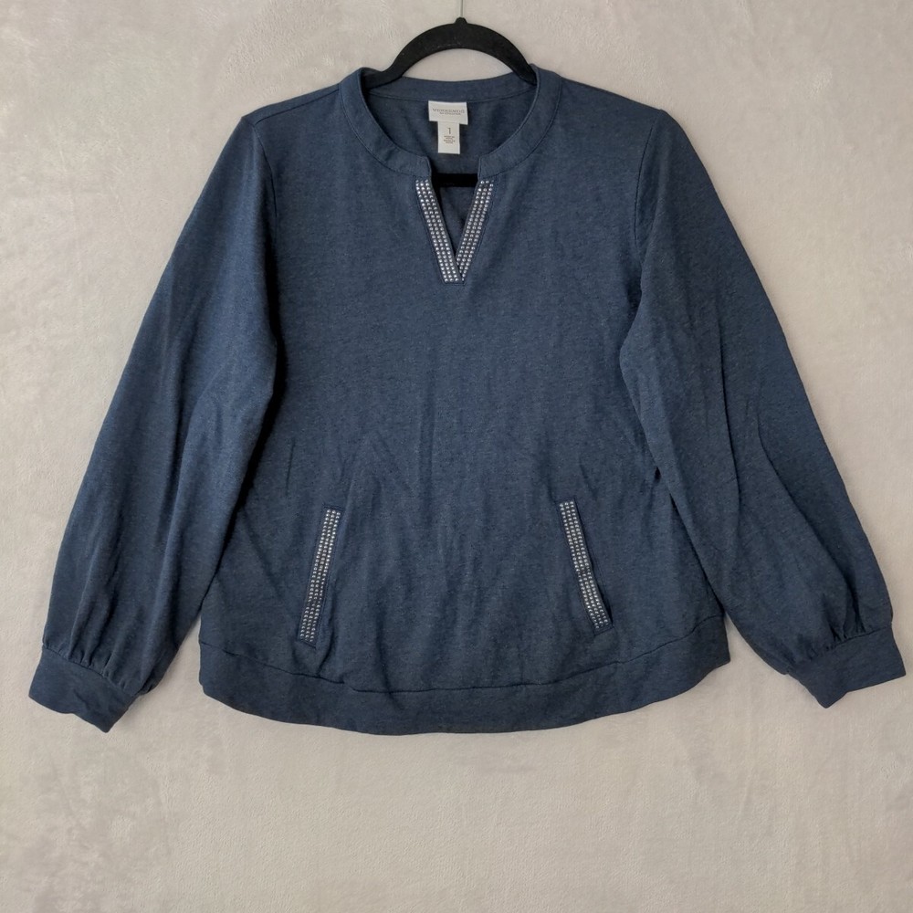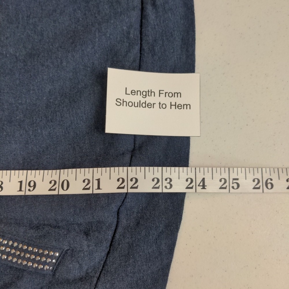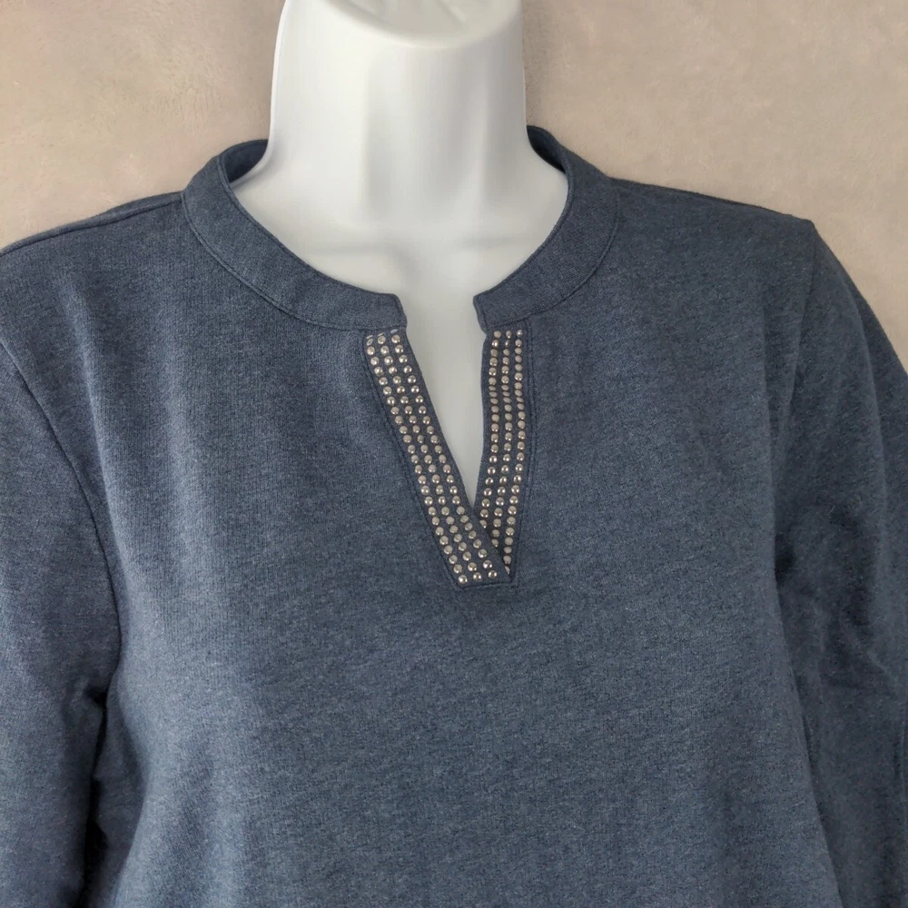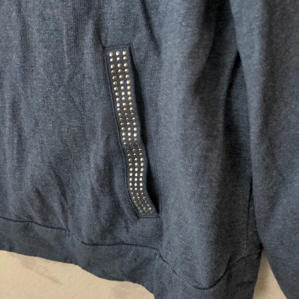 This top is so comfortable and stylish—the soft jersey knit feels amazing, and the metallic dots add just the right touch of flair. The pockets are a fun, functional detail, and the fit is perfect (true to size!). Minimal wear, looks brand new. Super fast shipping and great communication from the seller. Love it—would definitely buy again!