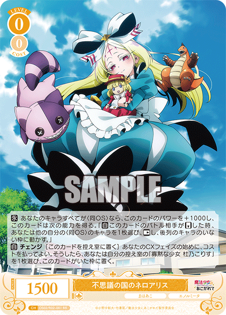Item Title Description Weiss Schwarz Rose OS02/R02-001 Nero Alice RR Gushing over Magical Girls Shipping Economy Shipping (No Tracking Japan Post) : $0 Standard Shipping (With Tracking Japan Post) : $4.00 Expedited Shipping (FedEx International Priority ): Additional fees International Buyers - Please Note: Import duties, taxes, and charges are not included in the item price or shipping cost. These charges are the buyer's responsibility. Please check with your country's customs office to determine what these additional costs will be prior to bidding or buying.