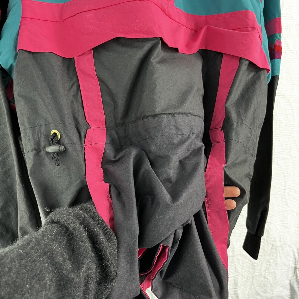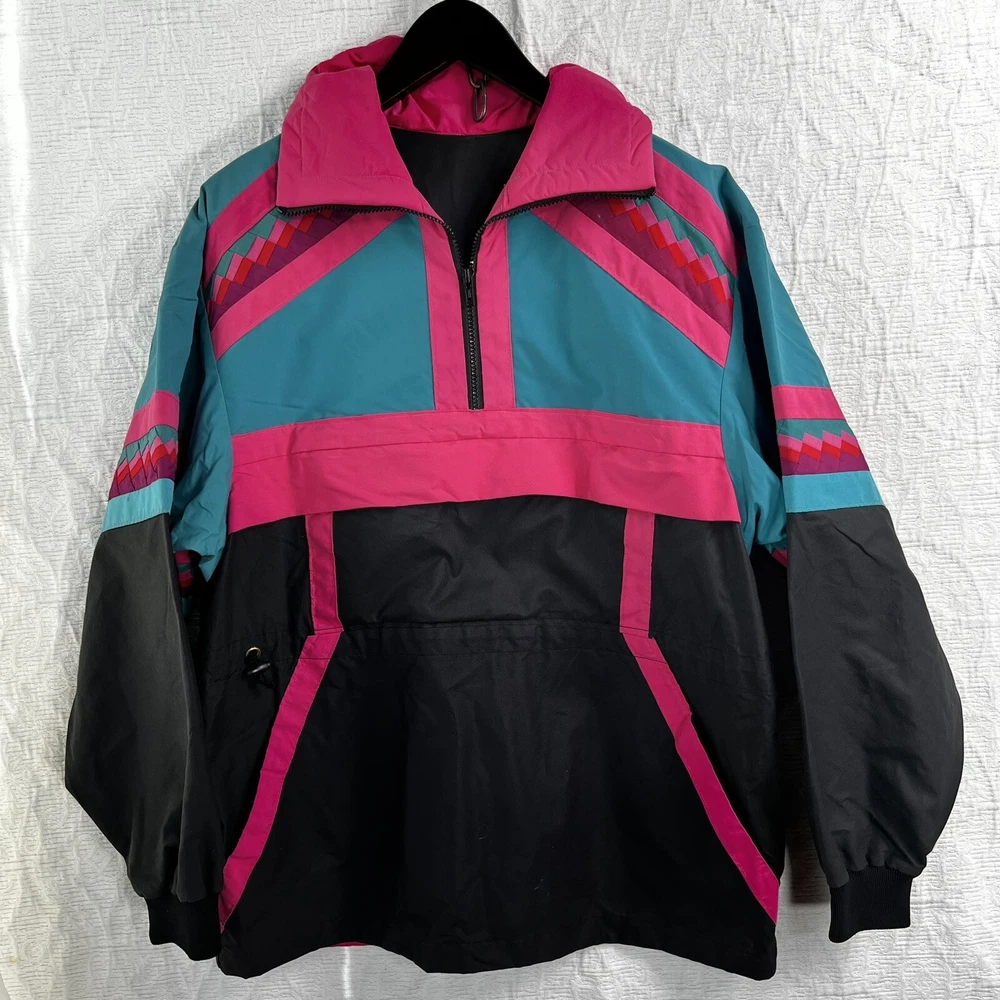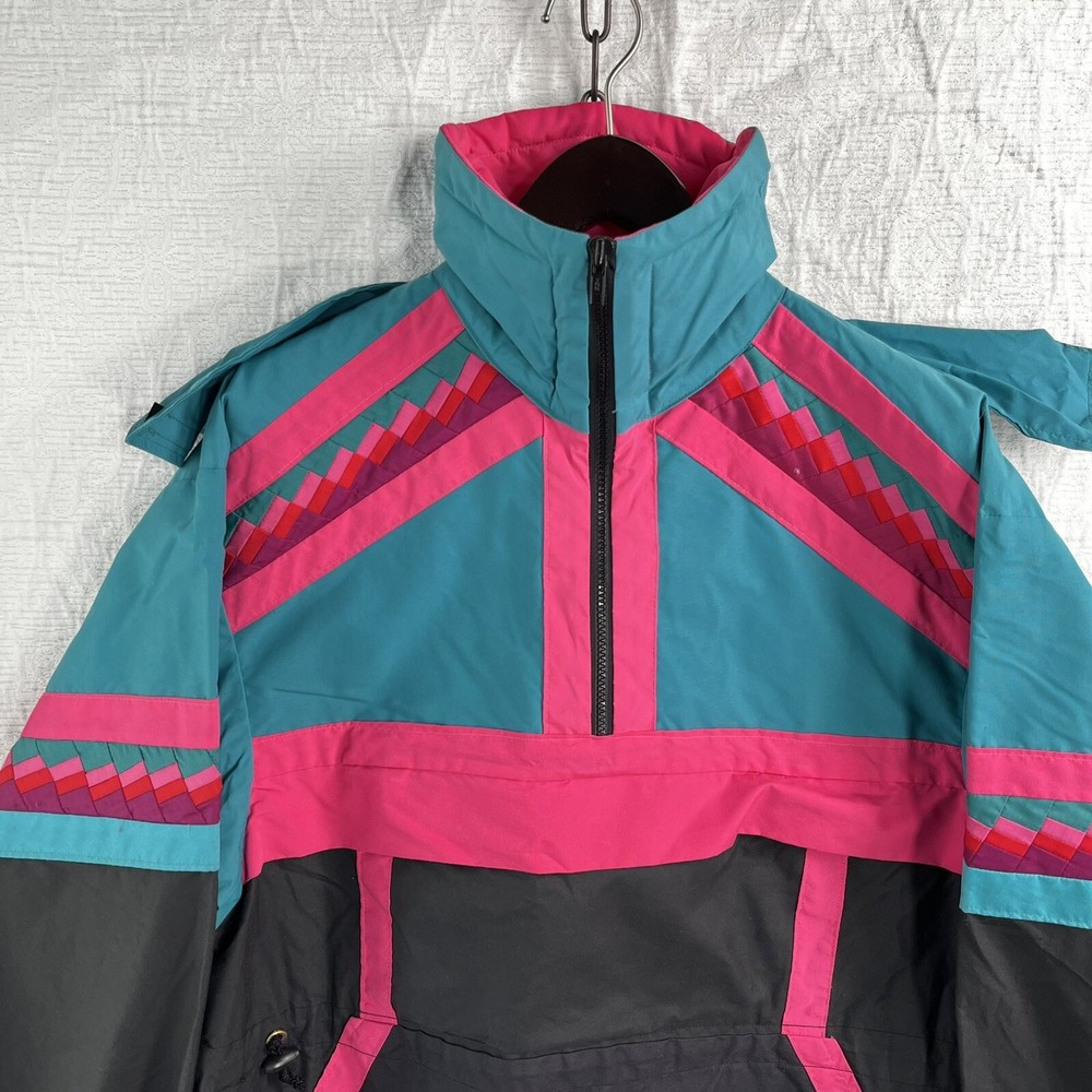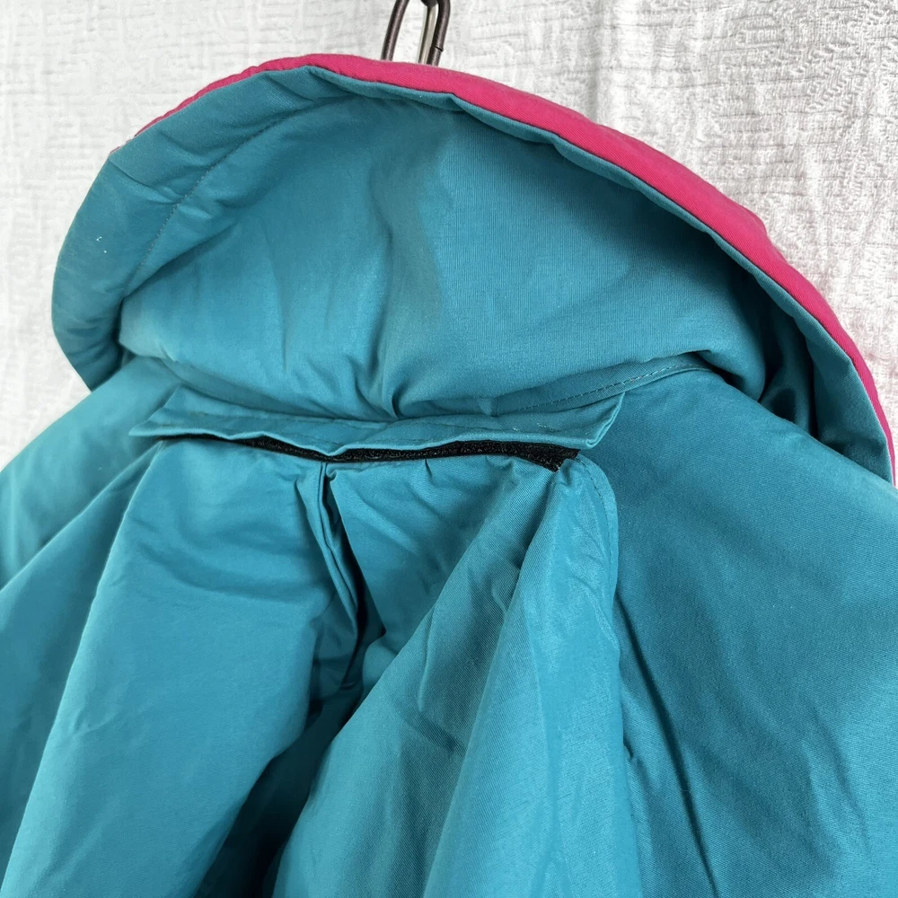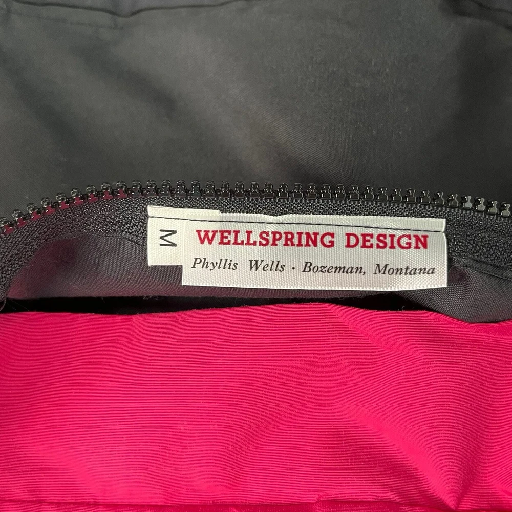 Wellspring Design Vintage Geometric Quilted Coat hand sewn by Phyllis Wells in Bozeman Montana size M chest 24” length 31” removable hood really good used condition no flaws found super late 80s early 90s ski culture x grandma corps quilting club.