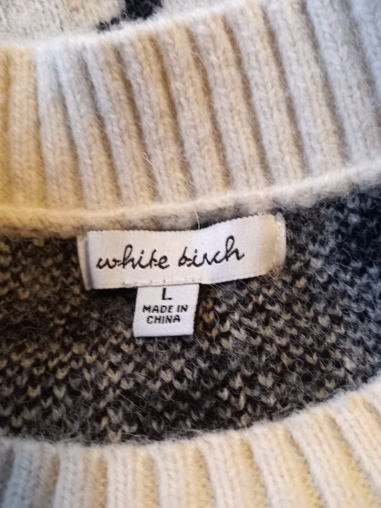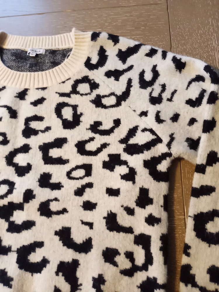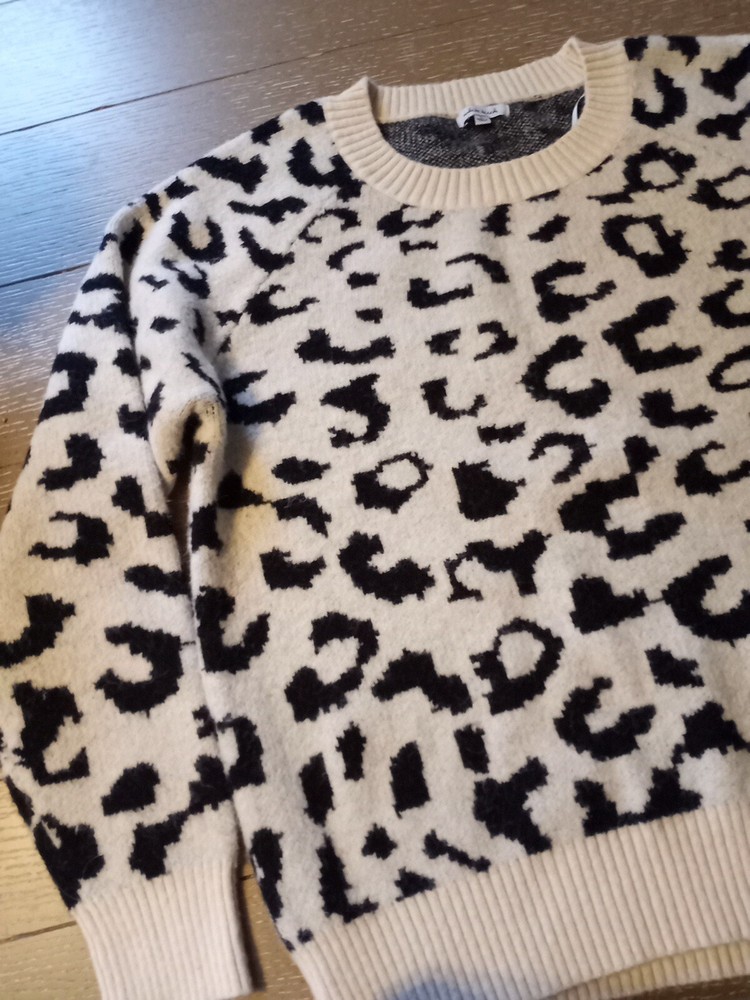 Elevate your wardrobe with this cozy and stylish sweater from White Birch. The cream and black leopard print adds a touch of wild to your look, while the tight-knit polyester, nylon, and acrylic blend material keeps you warm and comfortable. The raglan sleeves and relaxed fit add a casual vibe, making it perfect for everyday wear. This pullover sweater has a round neckline and long sleeves, making it a versatile piece for any occasion. It's machine washable for easy care and has no signs of wear and tear. Add this cute and trendy sweater to your collection today! No stains or tears.