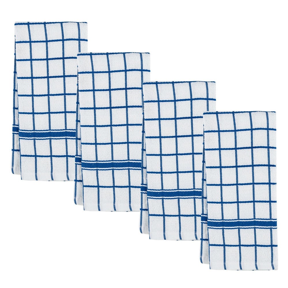 Set of 4 Kitchen Terry Towels Blue and White 100% Cotton Each Towel Measures 25 Inches Long X 17" Wide Color: Blue and White