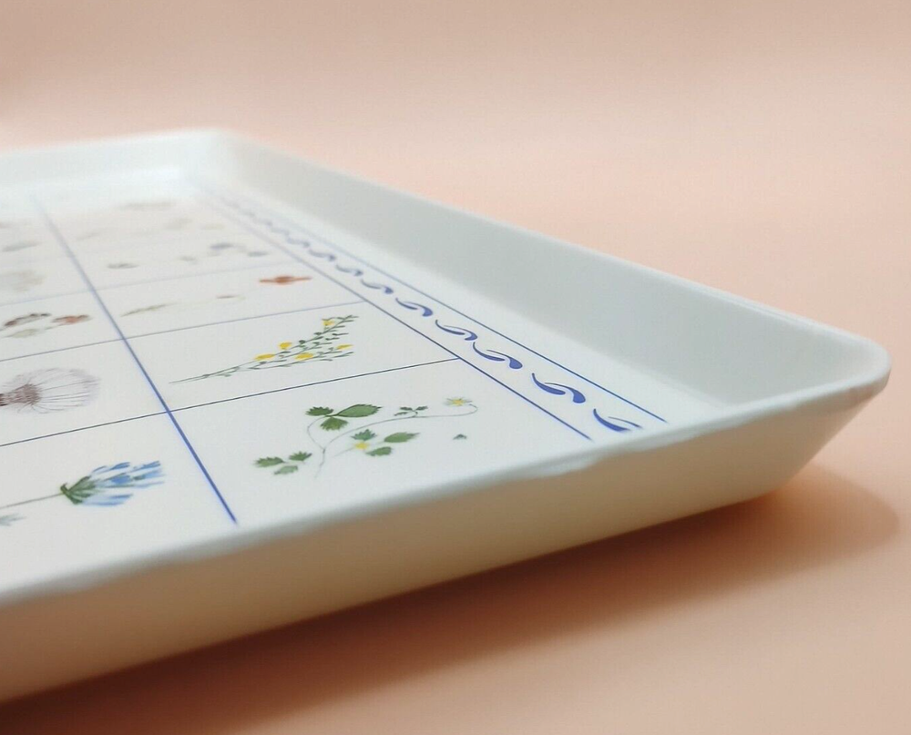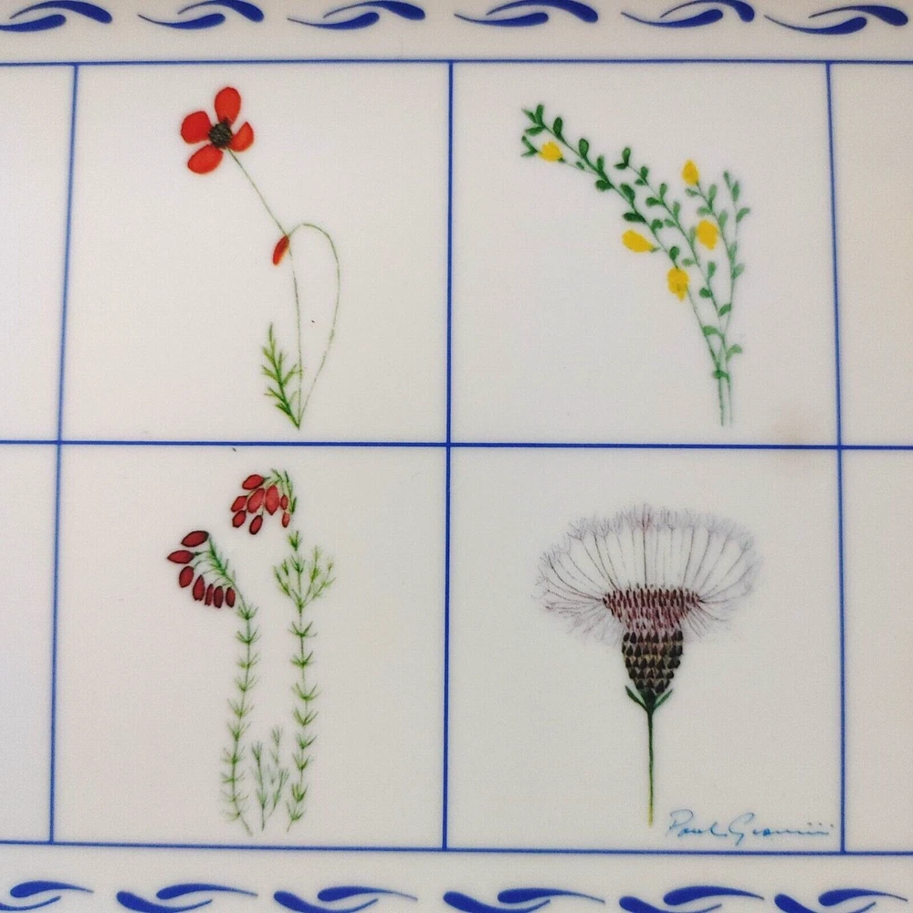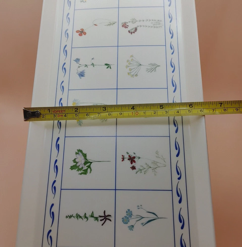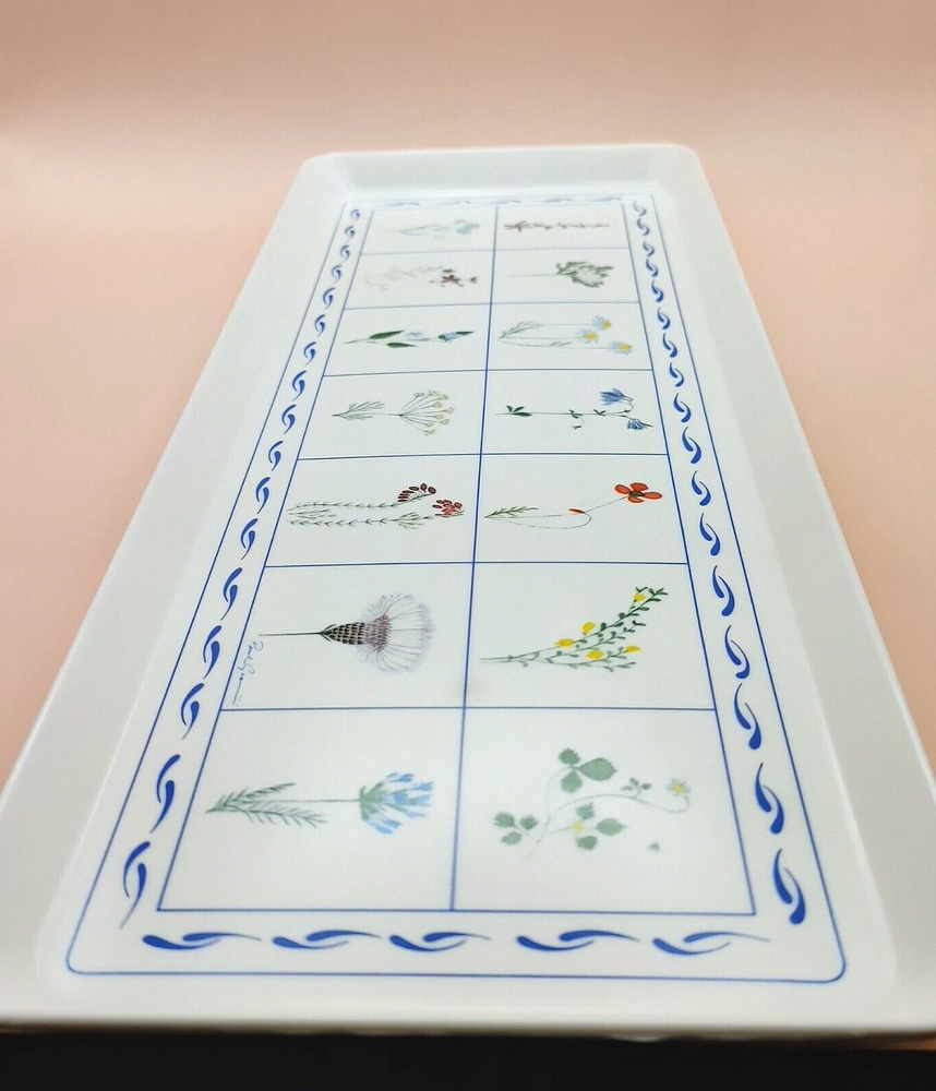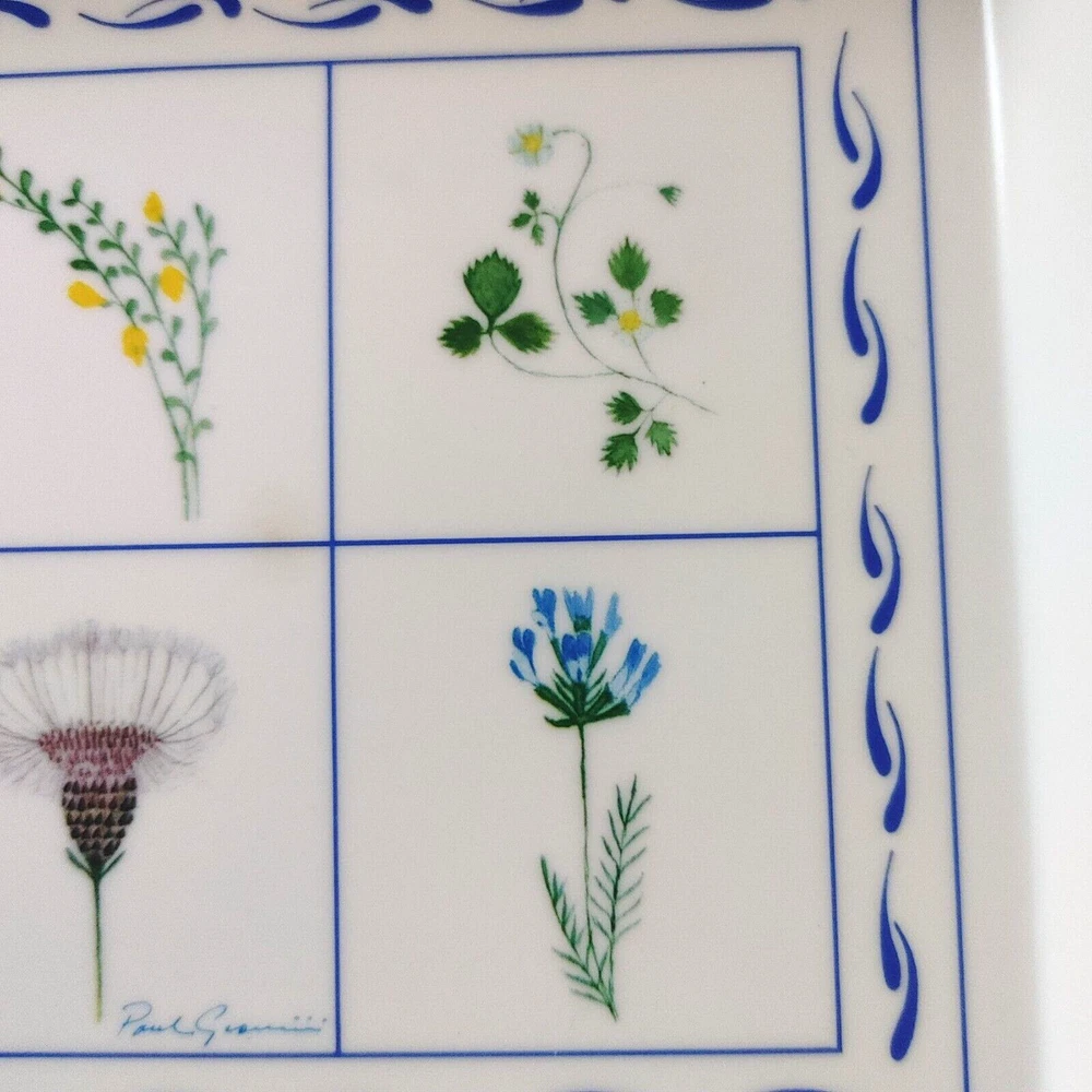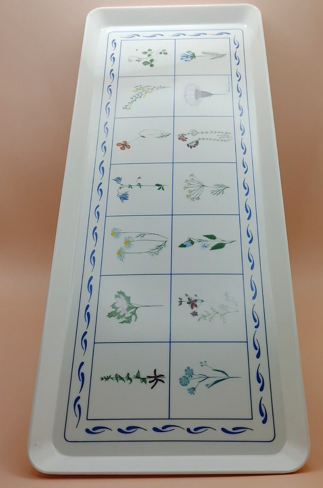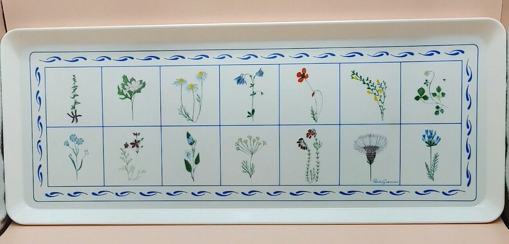 Enhance your midsummer gatherings with this Melamine Tray adorned with vibrant wildflower botanical designs by Paul Giannini. Crafted in Italy with high-quality melamine, this tray offers both style and durability, perfect for serving refreshing drinks or delicious appetizers al fresco. Hand washing recommended. No microwave. EUC Excellent Used Condition . No signs of wear, fading, stains, crazing or chips. Dimensions: 15.25" x 5 7/8" x 3/4", approx. Weight: 11.4 oz. When possible, recycled materials will be used to ship.