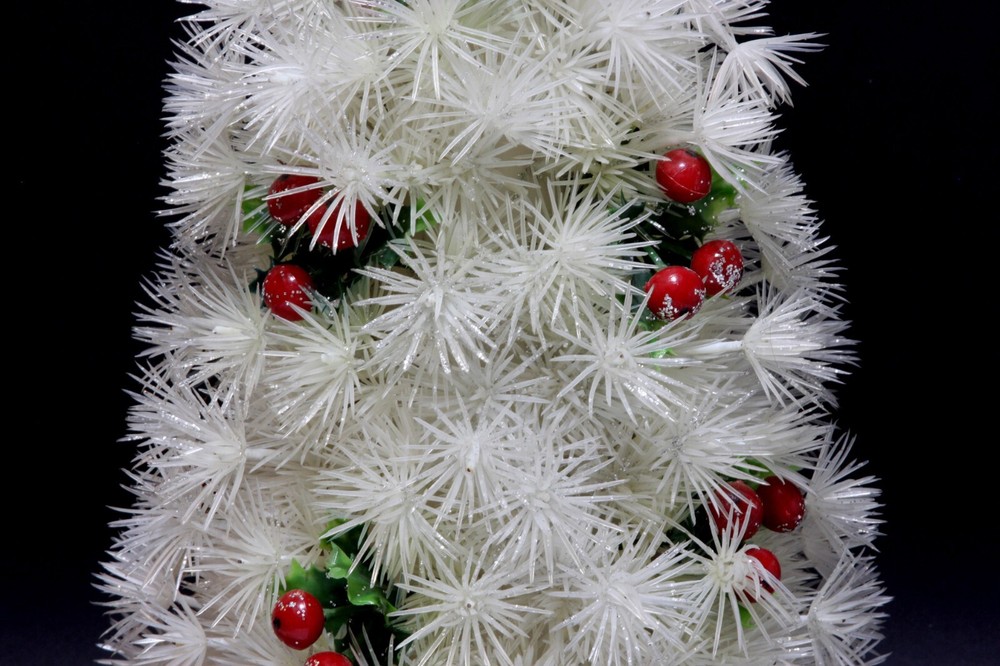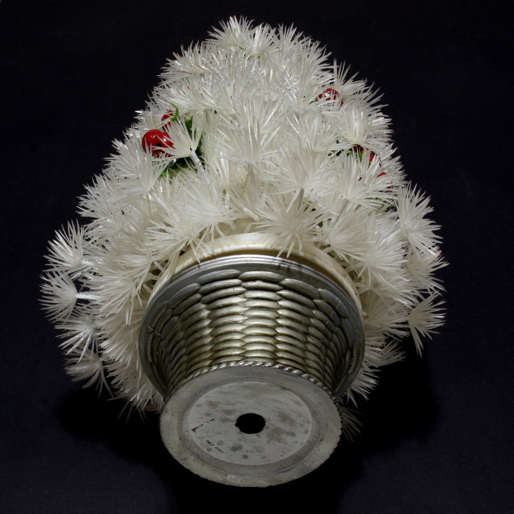 This Is A Rare Vintage White Plastic Christmas Tree With Holly Leaves And Berries And A Twist To Wind Musical Base. This unique 2 piece tree measures 16 inches tall on base, with approximately a 9 inch diameter, and is in very good condition, showing little use wear and some dust, as seen in the images, plus will look great in any holiday collection. Base plays Silent Night. Great Buy. Be Sure To Check Out My Other Items For Sale, And Be Sure To Contact Me Before You P urchase Multiple Items For Combined Shipping Savings. Any requests must be made and approved prior to bidding on or purchasing all items. Thank you for shopping at AfabDave’s.