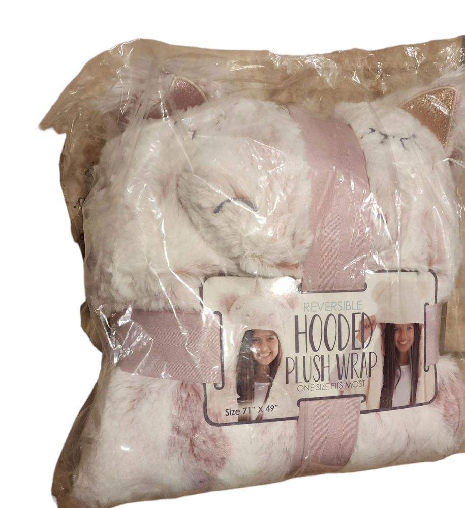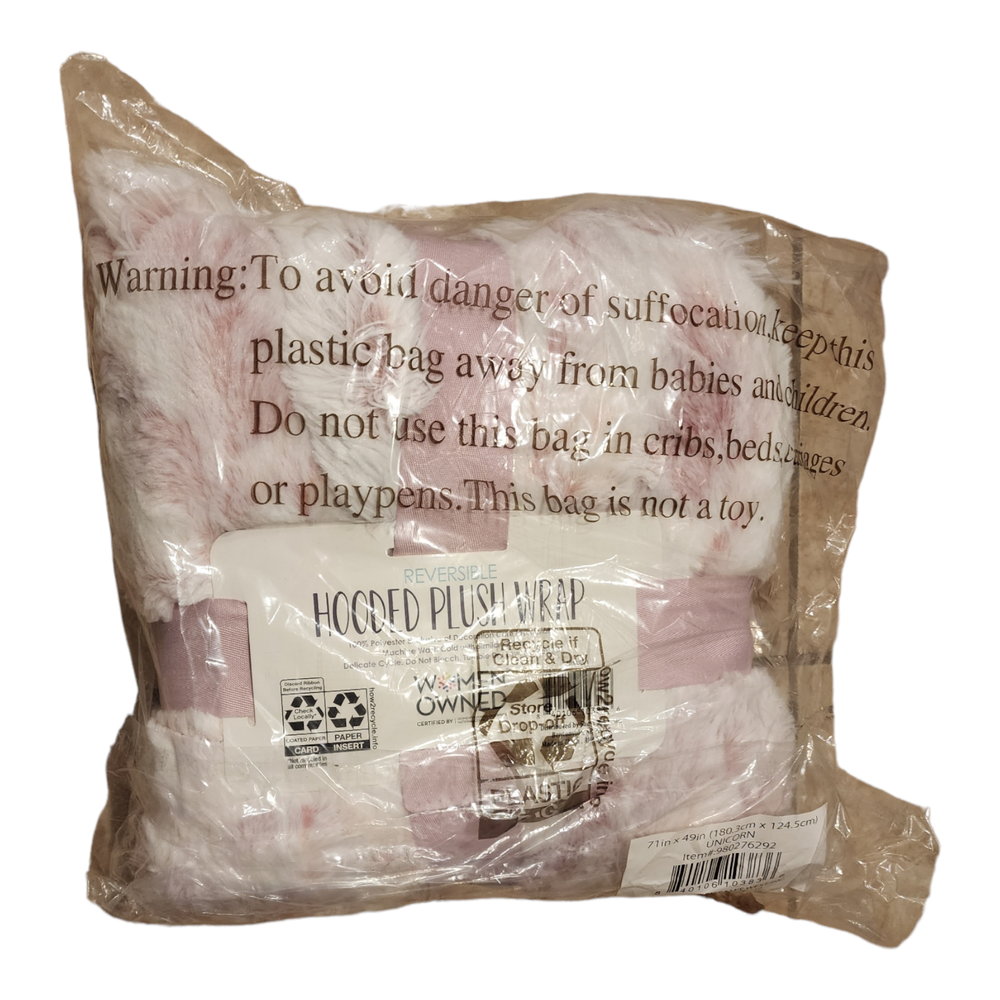 White/Pink Unicorn Cozy Hooded Plush Wrap Blanket Women Owned CO Reversible Brand new, factory sealed.... Size: 71in x 49in (180.3cm x 124.5cm)