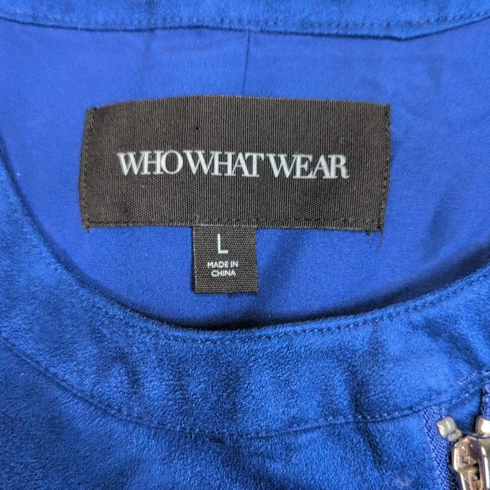 WhoWhatWear Jacket Womens L Blue Zip Up Soft Cozy Comfort Pockets Lightweight Excellent condition. Please review photos for measurements and condition. Item will be shipped within one business day. We ship items daily Monday-Friday. * Product color may vary slightly due to photographic lighting or your monitor settings.
