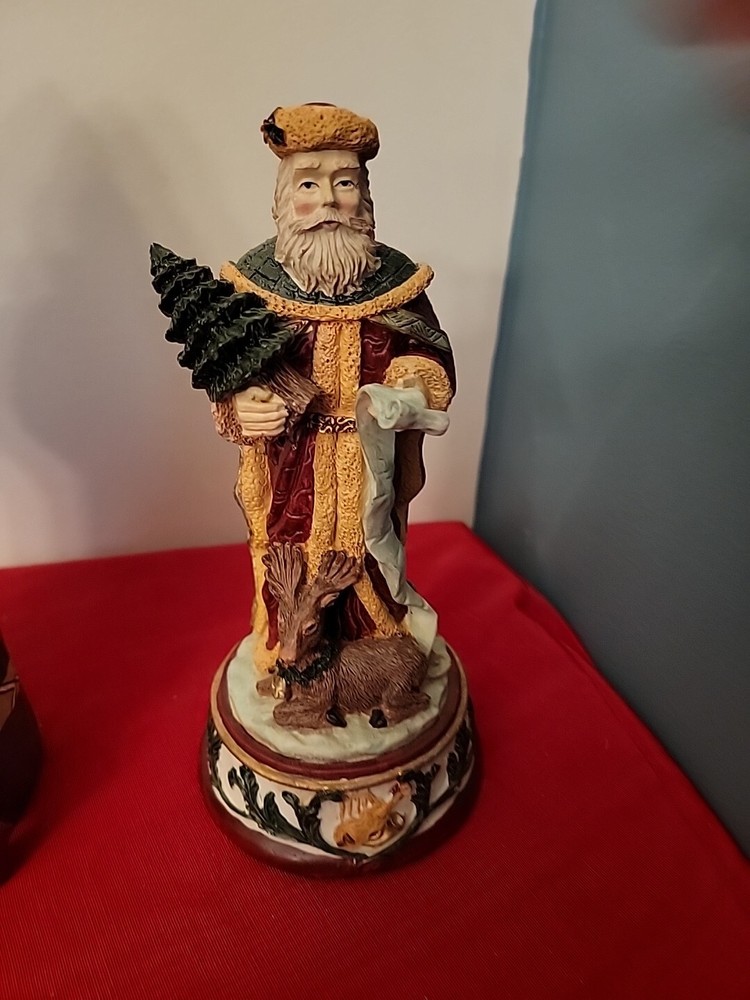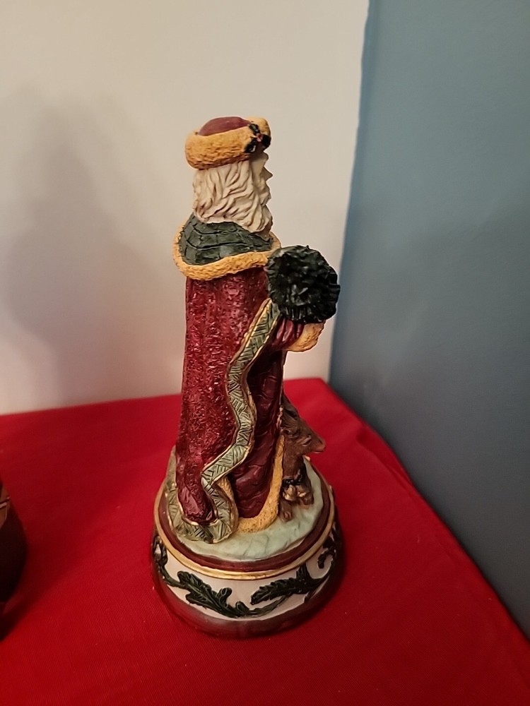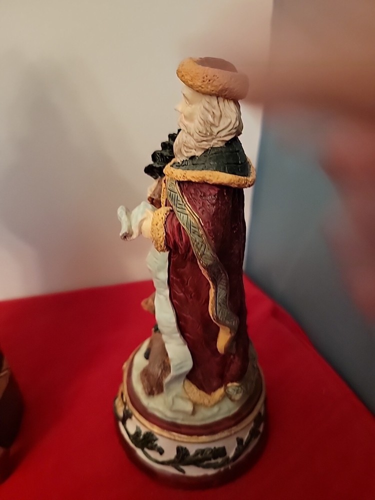 This vintage Windsor Collection Christmas figurine features a classic Santa Claus character in a textured red resin finish. The large 9-inch figurine is designed for adults and comes in its original box packaging. The Santa figurine is from the late 20th century era and was manufactured in China. The Santa figurine is part of the Windsor Santa Collection and plays the tune "We Wish You a Merry Christmas" as a musical feature. The collectible figurine is perfect for any room and is ideal for holiday decoration. Celebrate Christmas with this classic Santa figurine that will surely add charm and joy to your holiday season. In pre-owned working condition. See pictures and ask questions for more details Pictures serve as additional description Very nice ships fast via USPS