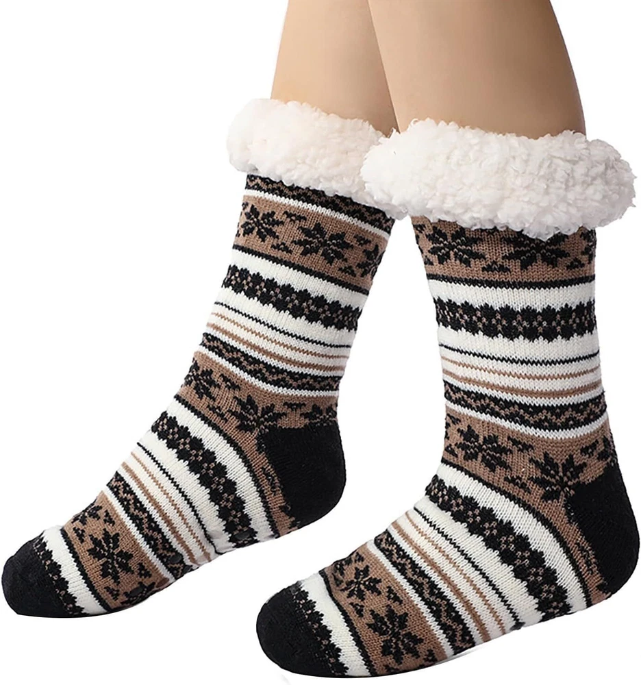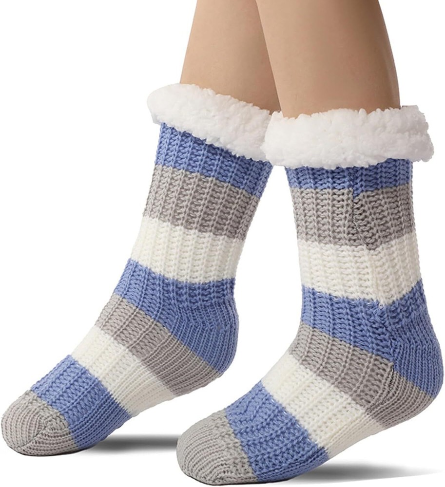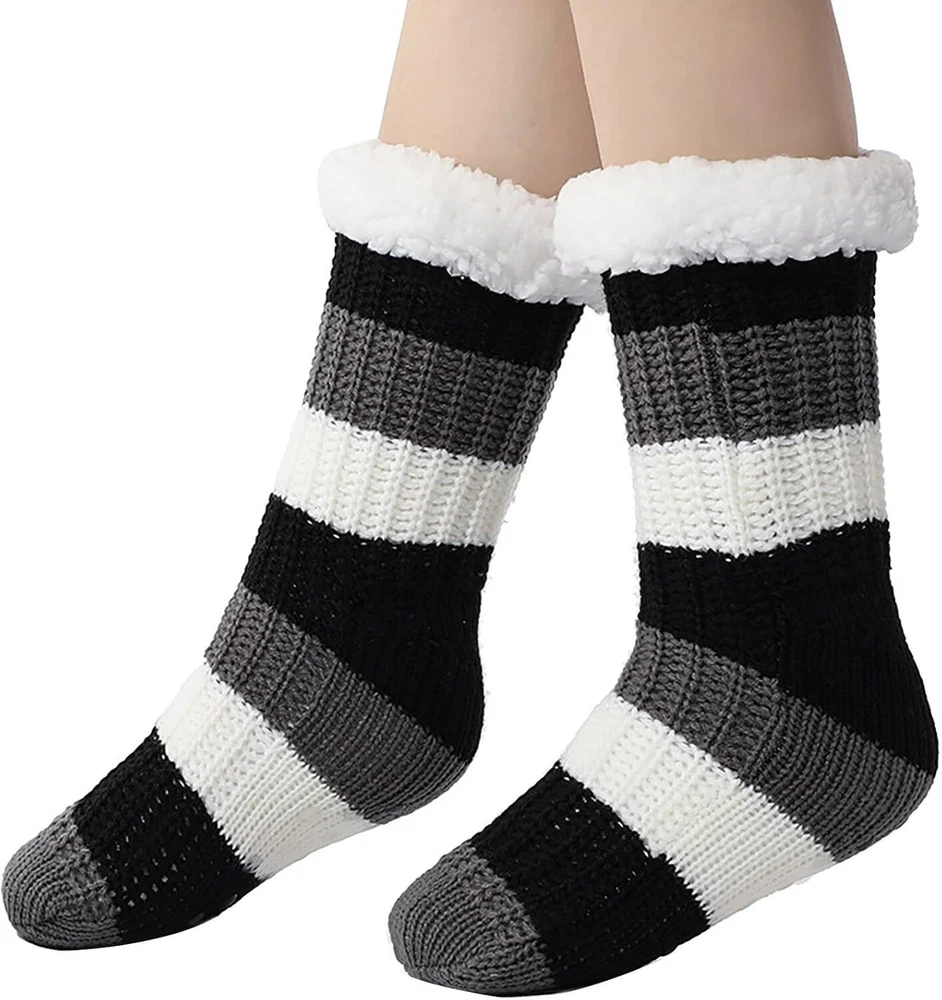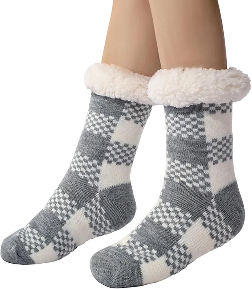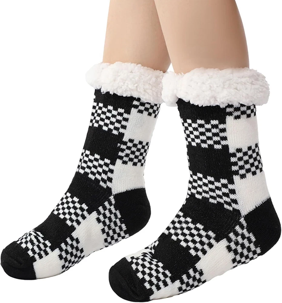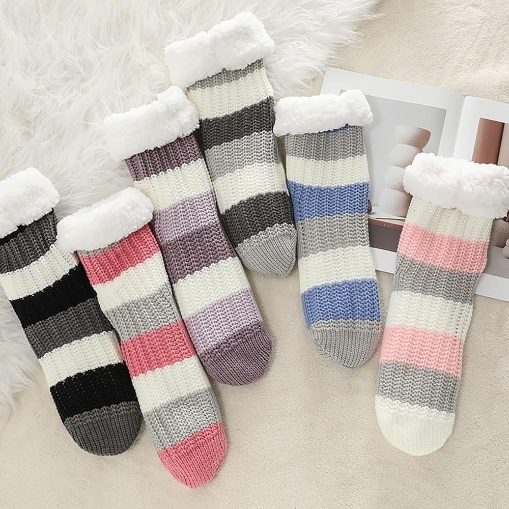 Product Description Fuzzy Thick Fluffy Socks With Grips Premium Quality Our socks are crafted from high-quality materials that ensure durability and comfort, making them ideal for everyday use. Non-Slip Design Silicon rubber grips on soles of socks prevent slips and falls on smooth floors. Great socks for womens or the elderly to prevent falls, all while looking stylish and comfortable.