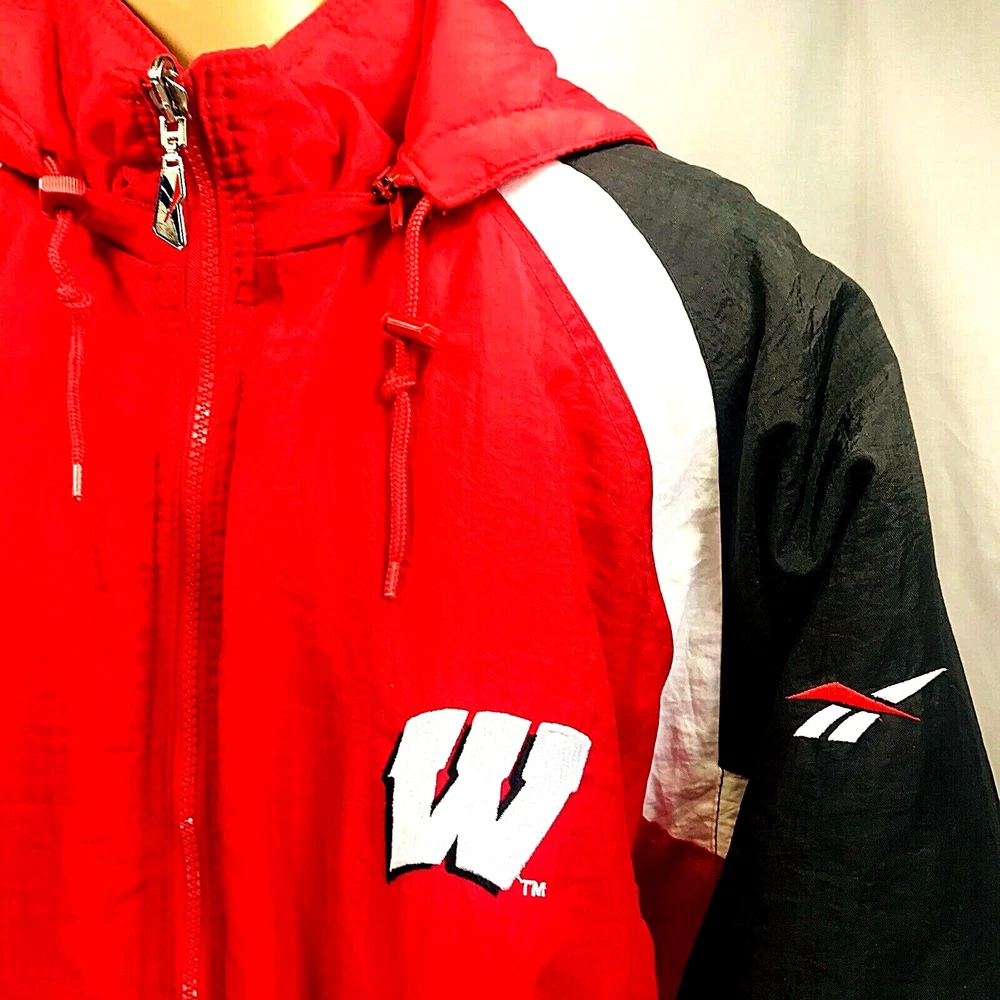 Vintage 90's Reebok Winter Jacket Wisconsin Badgers REVERSIBLE! Hooded Ski Parka. Size: Men's XL. ***Please see photos & measurements for Exact Size!!!*** Chest: 56" Sleeve: 28" Length: 29" Color: Red with Black and White Logos. Details: VINTAGE 90's REEBOK !!! Hooded Retro Parka. Reversible Wisconsin Badgers & Reebok. 100% Nylon Shell. Insulated - Polyester. Lined. Full Zip Closure. Removable Hood. Water & Wind Resistant. Excellent pre-owned and Loved. No Major Issues. Some Spotting...did not attempt to remove. Please see photos. Many Outings Left !! Pet and Smoke-Free home. Fully DISINFECTED. See photos for more details and measurements. From smoke-free, pet-free, clean home. *** GREAT DISCOUNTS !!! *** Combine and Buy Multiple items ? Save on Price and Shipping !!! CHECK OUT OUR STORES::::: the-meandering-emporium and sheeplessinseattle. ************************************ See photos for more details and measurements. Remember that colors can vary a bit, depending on your monitor settings and lighting conditions. Shipping: Ships with USPS with tracking. Ships worldwide. Tracking outside the USA is guaranteed. International Buyers: Import duties, taxes, and charges are not included in the item price or shipping cost. Those charges are the buyer's responsibility. Please check with your country's customs office to determine what these additional costs will be prior to bidding or buying. ***We aim to make your buying experience from us a good one - please contact us if you have any questions. If there is any issue please contact us. We are always willing to work with you to resolve an issue. We are "Top Rated" because we CARE about our customers and take care of them!