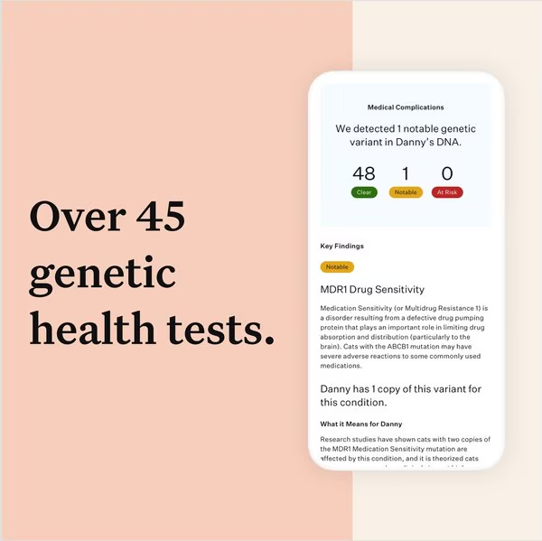 This cat DNA test screens for more than 70+ breeds and populations with a breed report down to 1%. Unlock 45+ health insights with screening for genetic health risks so you (and your vet) can help give your kitty the best care. Discover the “why” behind your furbaby’s physical features with over 25 traits tests. This cat DNA test offers precise detection with the largest cat breed reference available. Trusted by over 5 million pet parents, Wisdom Panel offers a leading DNA test, giving you insight into your furry family member’s past and future. Learn even more about your favorite furry friend with Wisdom Panel Complete for Cat DNA Test. This test delivers key insights about your kitty, including breed breakdown, trait tests, and potential health risks. Wisdom Panel analyzes thousands of data points to help you discover more about your furbaby’s genetic background. Gattheiring this information can help you provide the best care possible for your kitty, simply by helping you get to know their even better. Learn why your furry friend looks like they does, what issues might be a concern for their breed and what traits they are likely to exhibit. What's Included Cheek swab, Prepaid envelope, and activation code number to activate DNA Test kit online.