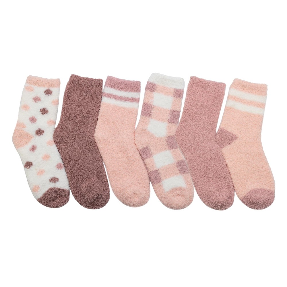 These socks are a game-changer for cozy lounging! The ultra-soft Plushfill yarn feels amazing against your skin, like walking on clouds. They keep my feet perfectly warm without overheating, and the stretchy fit moves with me whether I'm relaxing or doing light chores. The fun patterns add a cute touch, and they've only gotten softer after washing. Perfect for chilly mornings or curling up with a book—I want to wear them all day! The demi-crew height stays put without slipping. At this price for 6 pairs, it's an incredible value for such premium comfort. My new go-to house socks!