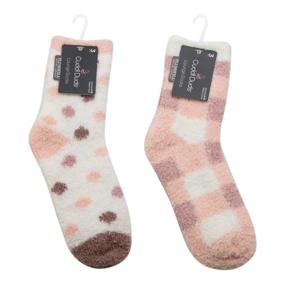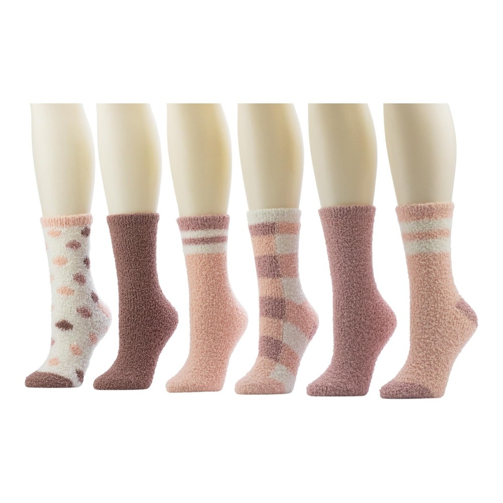 Legwear that offers functionality and comfort to help ensure your feet feel supported. Made with proprietary Plushfill yarns that are engineered for comfort and are super soft to the touch with a fabulous fit. Cozy fibers help keep your feet warm and stretch to move with you while active. Socks get softer with continued wash and wear. A NOT-SO-BASIC EVERYDAY BASIC: Indulge in the ultimate relaxation with our unbelievably soft, plush demi crew lounge socks, meticulously designed for year-round comfort. These aren't just socks; they're a cozy retreat for your feet, perfect for any season. Elevate your sock game with our vibrant colors and delightful patterns, including classic stripes and playful polka dots. These socks are a stylish and fun addition to any sock drawer. ALL DAY COMFORT: Whether you're enjoying a lazy day at home, curling up with a book, or seeking solace on chilly winter nights, these extra cozy socks are your go-to solution. They keep your feet warm and snug all day long, making cold toes a thing of the past. The year round height of this sock hits above the ankle. QUALITY CONSTRUCTION: Made with proprietary Plushfill yarns that are engineered for comfort and are super soft to the touch with a fabulous fit. Feel the softness in every step. PERFECT FOR: Lounging around the home and keeping cozy indoors. Pop on a pair first thing in the morning instead of a slipper. Can be worn with or without a shoe to keep feet warm. These socks are one size fits most. Fits shoe sizes 4-10. CARE INSTRUCTIONS: Machine wash cold, gentle cycle. Use only non-chlorine bleach when needed. Tumble dry low and remove promptly.