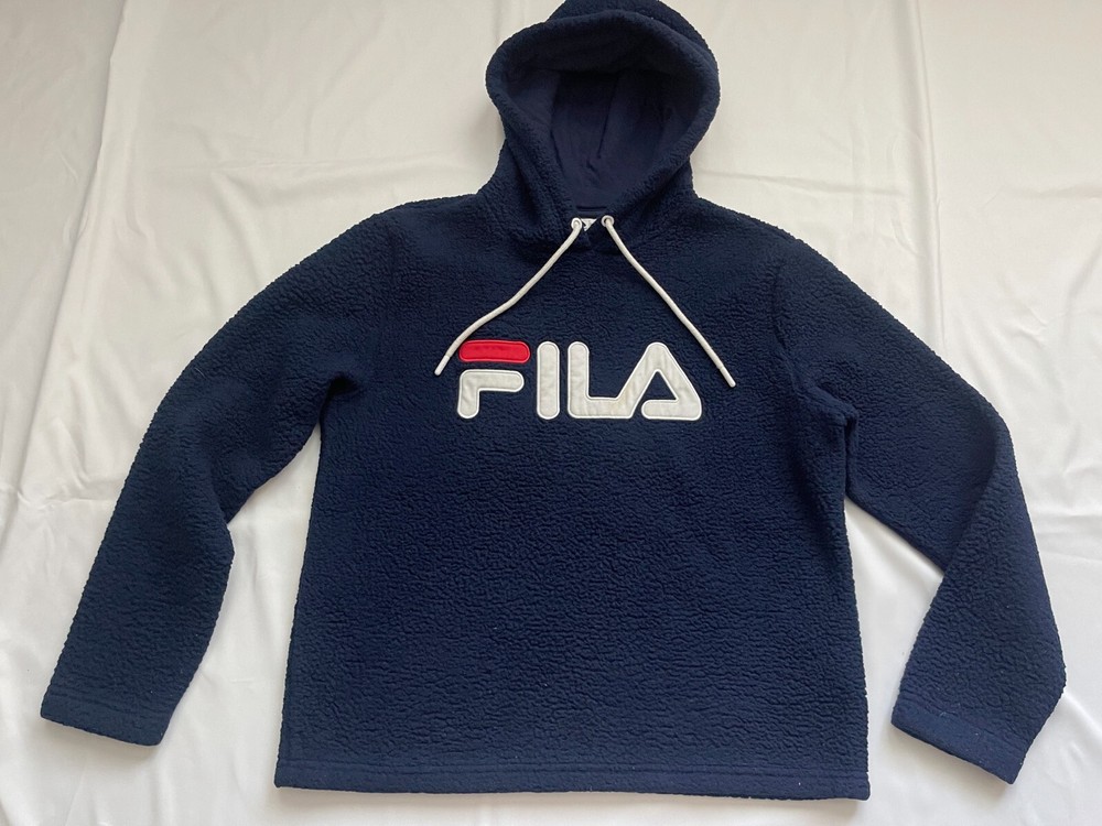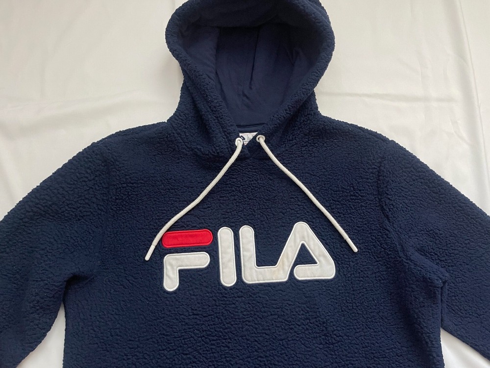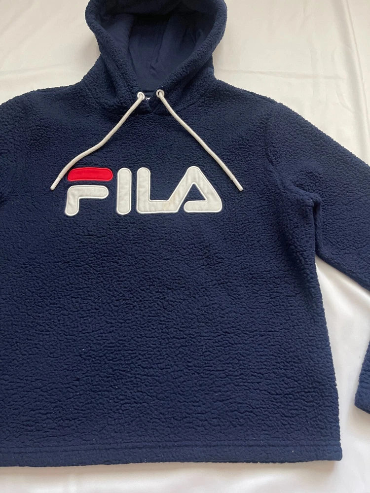 Women Fila Fleece Hoodie Sweatshirt Pullover Plush Fluffy Cozy Top *Brand name: Fila *Pre-owned *Color: Blue *Women US size: Large *Size measurement: the length from the armpit to armpit is approx 22" the length from the shoulder to hem is approx 24" *Plush fluffy style hoodie *Fila logo front, there is a light stain between letter L and A (please see the photos for detail) *Don't miss the chance to buy this nice Filla hoodie *We have more items in our Ebay store please feel free to check them out Track Page Views With Auctiva's Counter