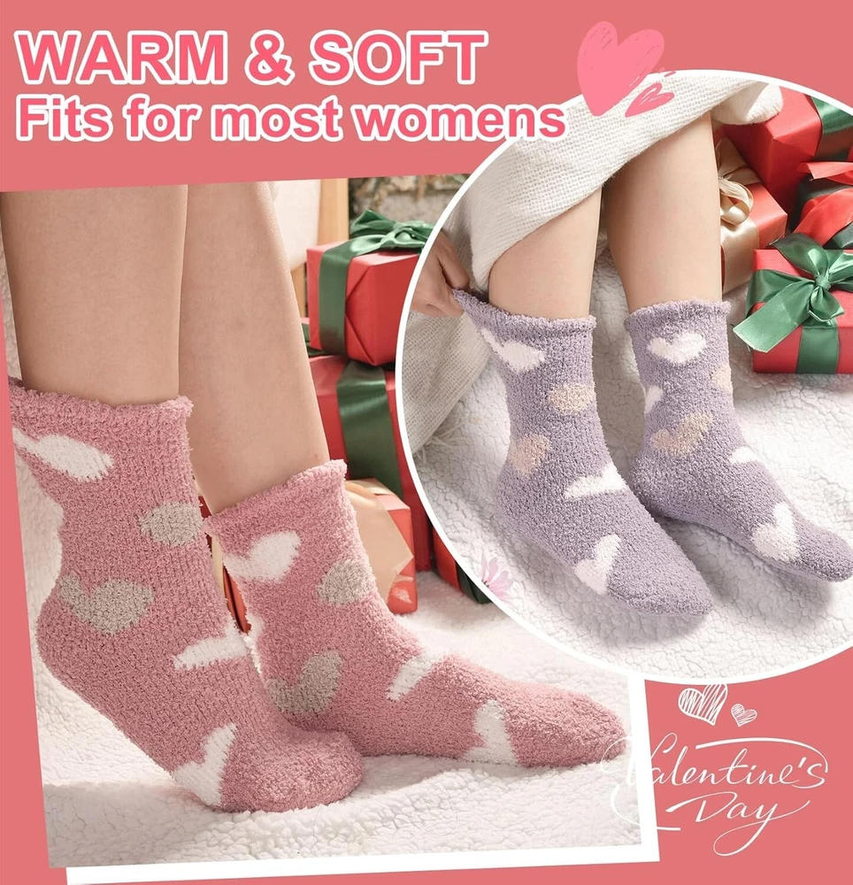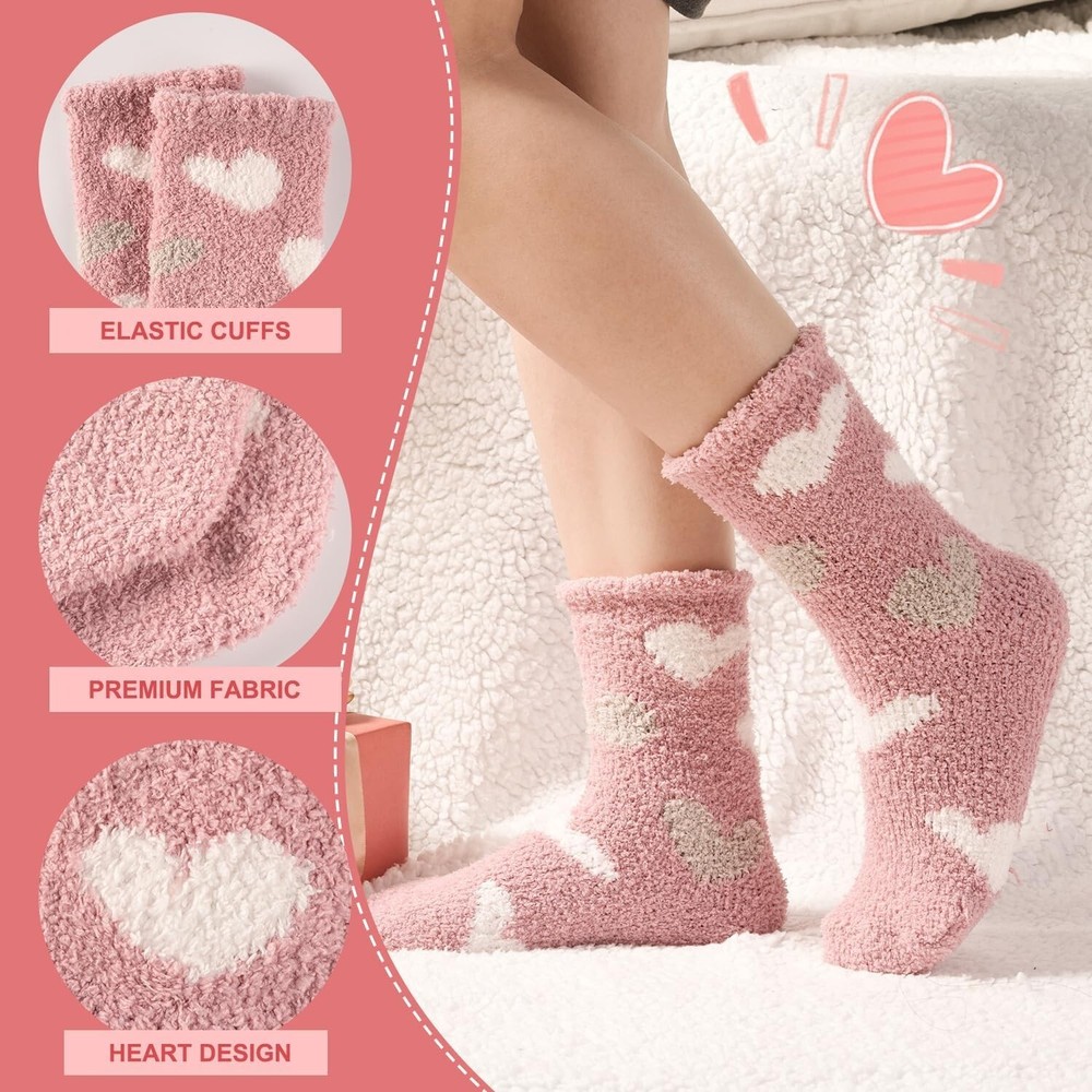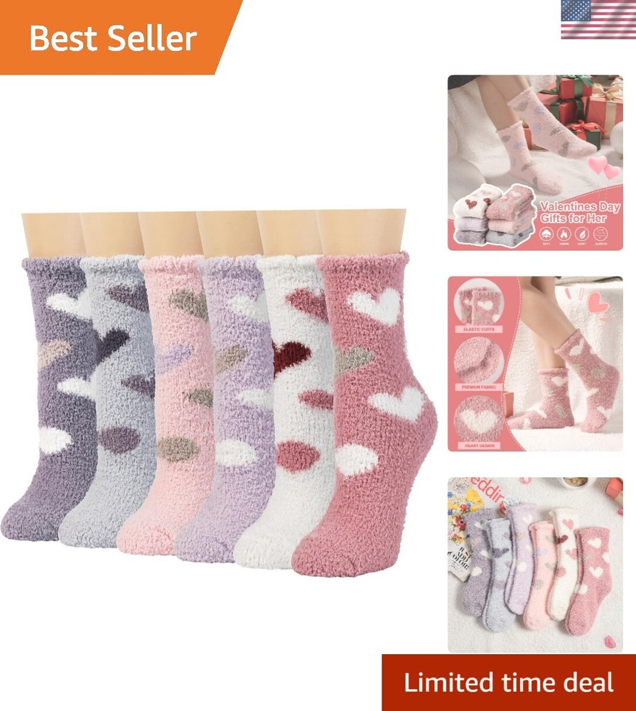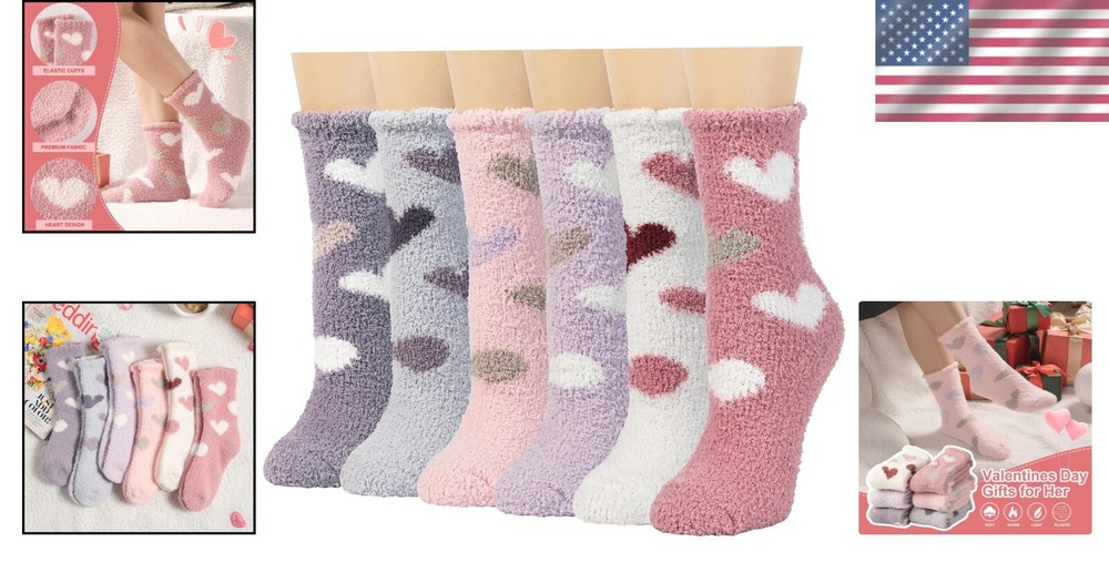 Women Plush Slipper Socks Fuzzy Cozy Warm Microfiber Gift Pack 6 Pairs < class="slides"> ‹ › ‹ › ‹ › ‹ › ‹ › ‹ › ‹ › ‹ › ‹ › ‹ › Keep Your Feet Cozy and Stylish with Heart Fuzzy Socks - Perfect for Gifting! Embrace warmth and comfort with our Value Pack of 6 Heart Fuzzy Socks, crafted from microfiber for a super soft and fluffy feel. Designed to keep your feet warm during the coldest days, these cozy socks are ideal for lounging, sleeping, or standing long hours at work. Their cute candy or ice-cream colors add a touch of joy to your winter wardrobe, making them a delightful gift for loved ones on Christmas, New , Thanksgiving, Mother’s Day, or Valentine’s Day. Microfiber Material – Super soft, cozy, and durable for everyday wear. One Size Fits Most – Designed to fit Women’s Shoe US Size 6-10 comfortably. Versatile Use – Perfect for autumn, winter, early spring, or cool summer rooms. Stylish and Fun Colors – Bright, cute colors to lift your mood and add cheer to your day. Easy Care – Machine washable and long-lasting with proper care. Limited stock! Gift your loved ones a pair of warm, fuzzy comfort this season before they sell out. Make every day special with cozy feet and warm hearts. These stylish fuzzy socks are a thoughtful gift for any occasion, from holidays to just because. Shop with confidence – We provide quality products and excellent customer service. Your comfort and satisfaction are our priorities. Don’t wait—order your Heart Fuzzy Socks today and enjoy warm, happy feet all season long! Material: Microfiber Features: Loose fitting,Warm,Soft,Cozy,Fluffy Season: All Seasons,Fall,Spring,Winter Occasion: Casual,Home,Gift Style: Fuzzy Socks Color: Multicolor Size: One Size Type: Socks Department: Women Number in Pack: 6 Pairs Garment Care: Machine Washable
