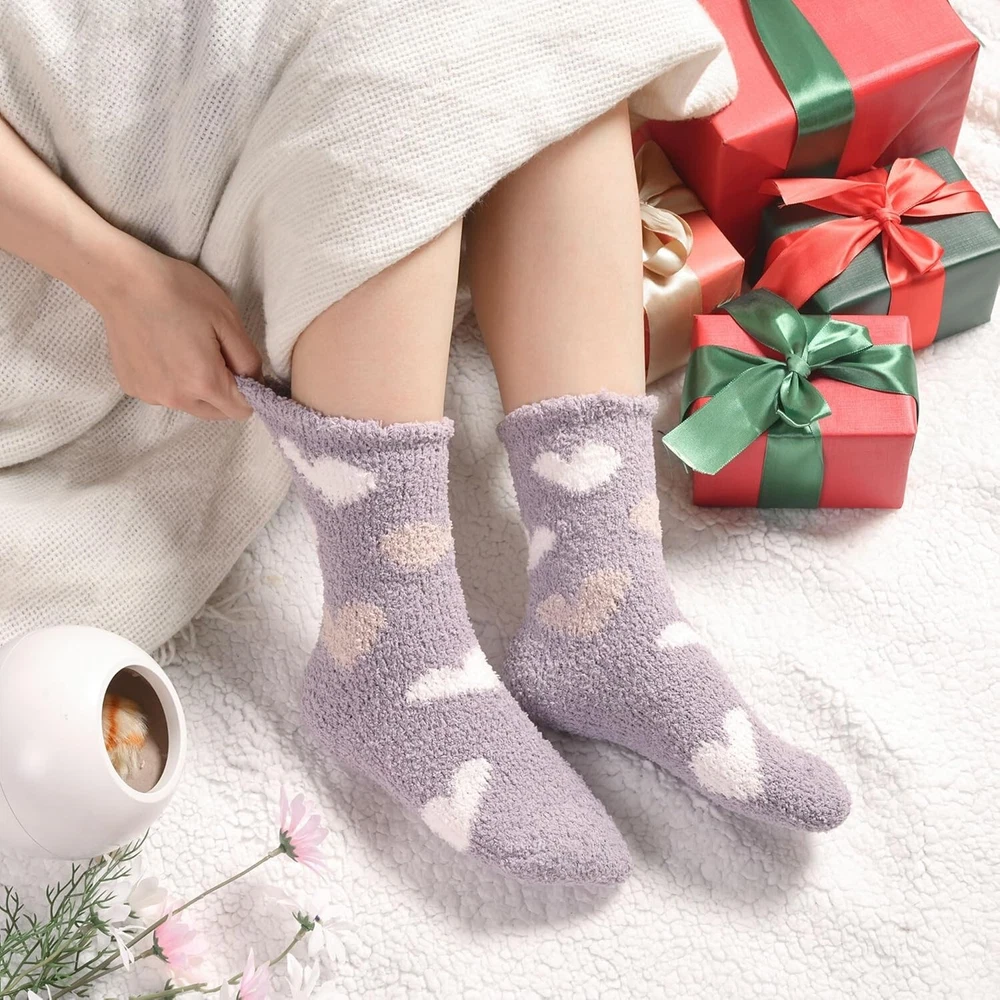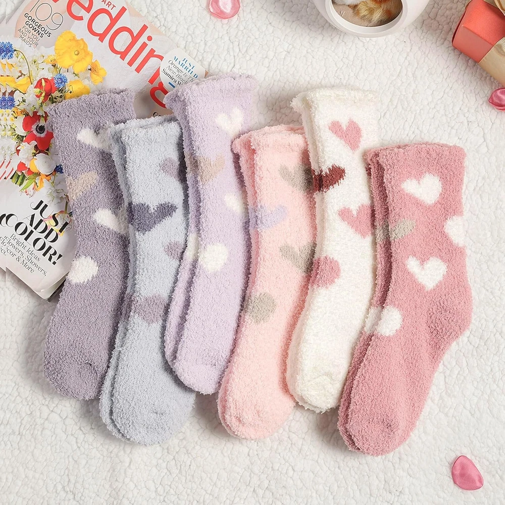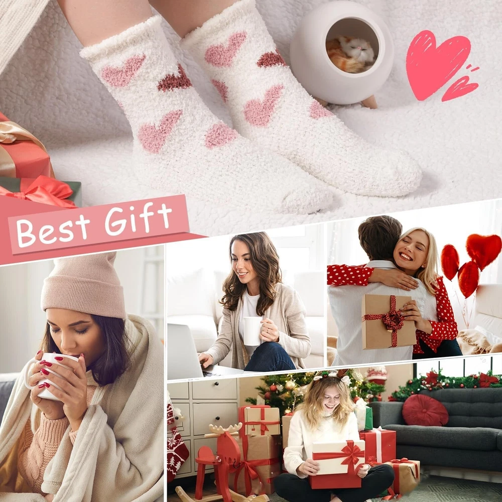 Women Plush Slipper Socks Fuzzy Cozy Warm Microfiber Gift Pack 6 Pairs < class="slides"> ‹ › ‹ › ‹ › ‹ › ‹ › ‹ › ‹ › ‹ › ‹ › ‹ › Keep Your Feet Cozy and Stylish with Heart Fuzzy Socks - Perfect for Gifting! Embrace warmth and comfort with our Value Pack of 6 Heart Fuzzy Socks, crafted from microfiber for a super soft and fluffy feel. Designed to keep your feet warm during the coldest days, these cozy socks are ideal for lounging, sleeping, or standing long hours at work. Their cute candy or ice-cream colors add a touch of joy to your winter wardrobe, making them a delightful gift for loved ones on Christmas, New , Thanksgiving, Mother’s Day, or Valentine’s Day. Microfiber Material – Super soft, cozy, and durable for everyday wear. One Size Fits Most – Designed to fit Women’s Shoe US Size 6-10 comfortably. Versatile Use – Perfect for autumn, winter, early spring, or cool summer rooms. Stylish and Fun Colors – Bright, cute colors to lift your mood and add cheer to your day. Easy Care – Machine washable and long-lasting with proper care. Limited stock! Gift your loved ones a pair of warm, fuzzy comfort this season before they sell out. Make every day special with cozy feet and warm hearts. These stylish fuzzy socks are a thoughtful gift for any occasion, from holidays to just because. Shop with confidence – We provide quality products and excellent customer service. Your comfort and satisfaction are our priorities. Don’t wait—order your Heart Fuzzy Socks today and enjoy warm, happy feet all season long! Material: Microfiber Features: Loose fitting,Warm,Soft,Cozy,Fluffy Season: All Seasons,Fall,Spring,Winter Occasion: Casual,Home,Gift Style: Fuzzy Socks Color: Multicolor Size: One Size Type: Socks Department: Women Number in Pack: 6 Pairs Garment Care: Machine Washable